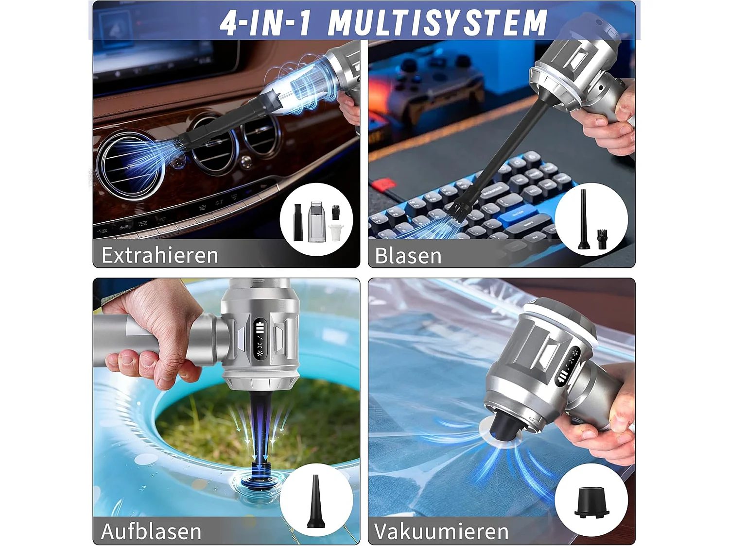Nettlife Aspirateur à Main Sans Fil 17000Pa - Mini Aspirateur Voiture Puissant 4 en 1 - Moteur Brushless 3 Vitesses - Maison & Animaux, Argent