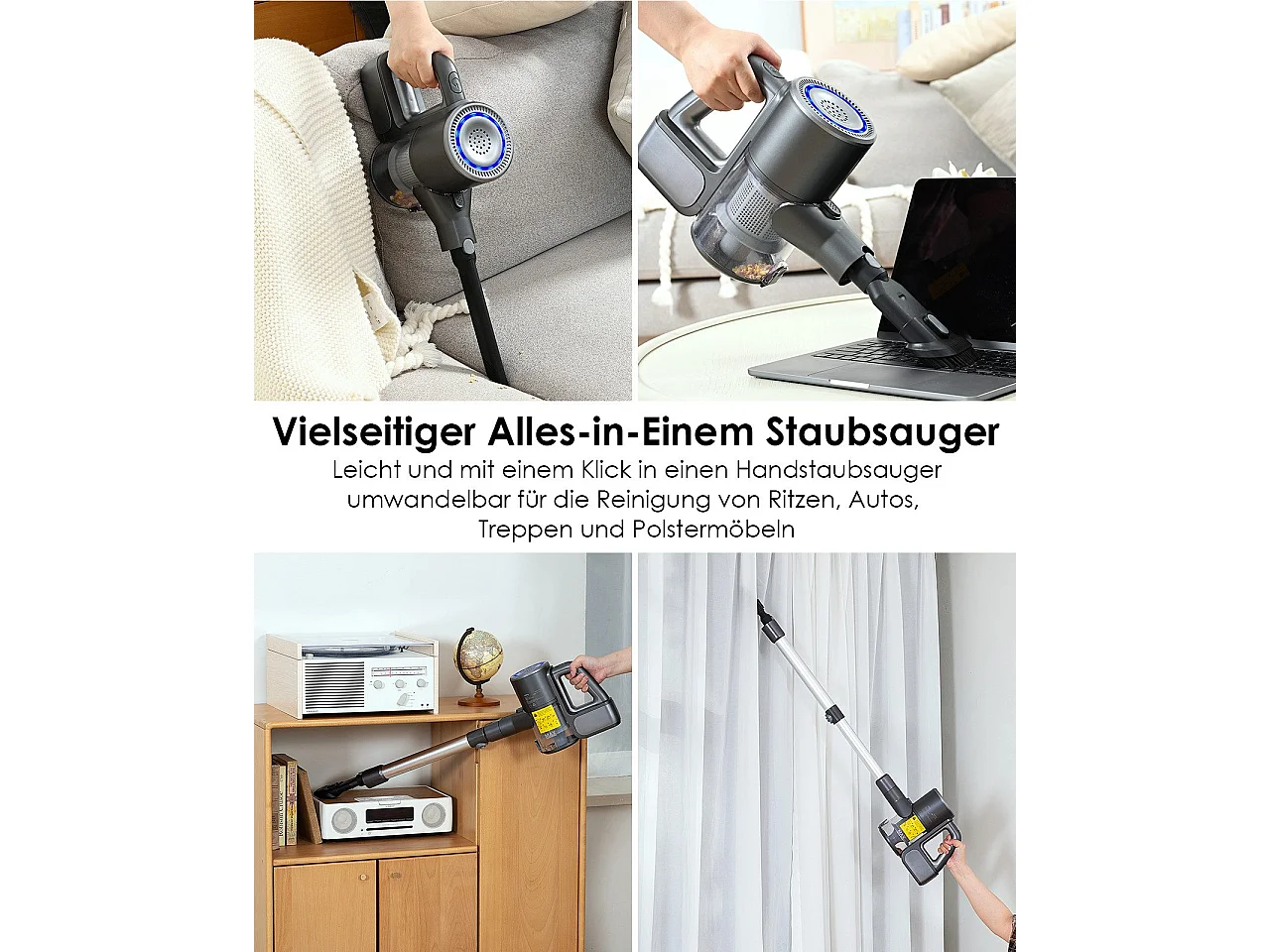 Nettlife Aspirateur à Main Sans Fil 17000Pa - Mini Aspirateur Voiture Puissant 4 en 1 - Moteur Brushless 3 Vitesses - Maison & Animaux, Gris