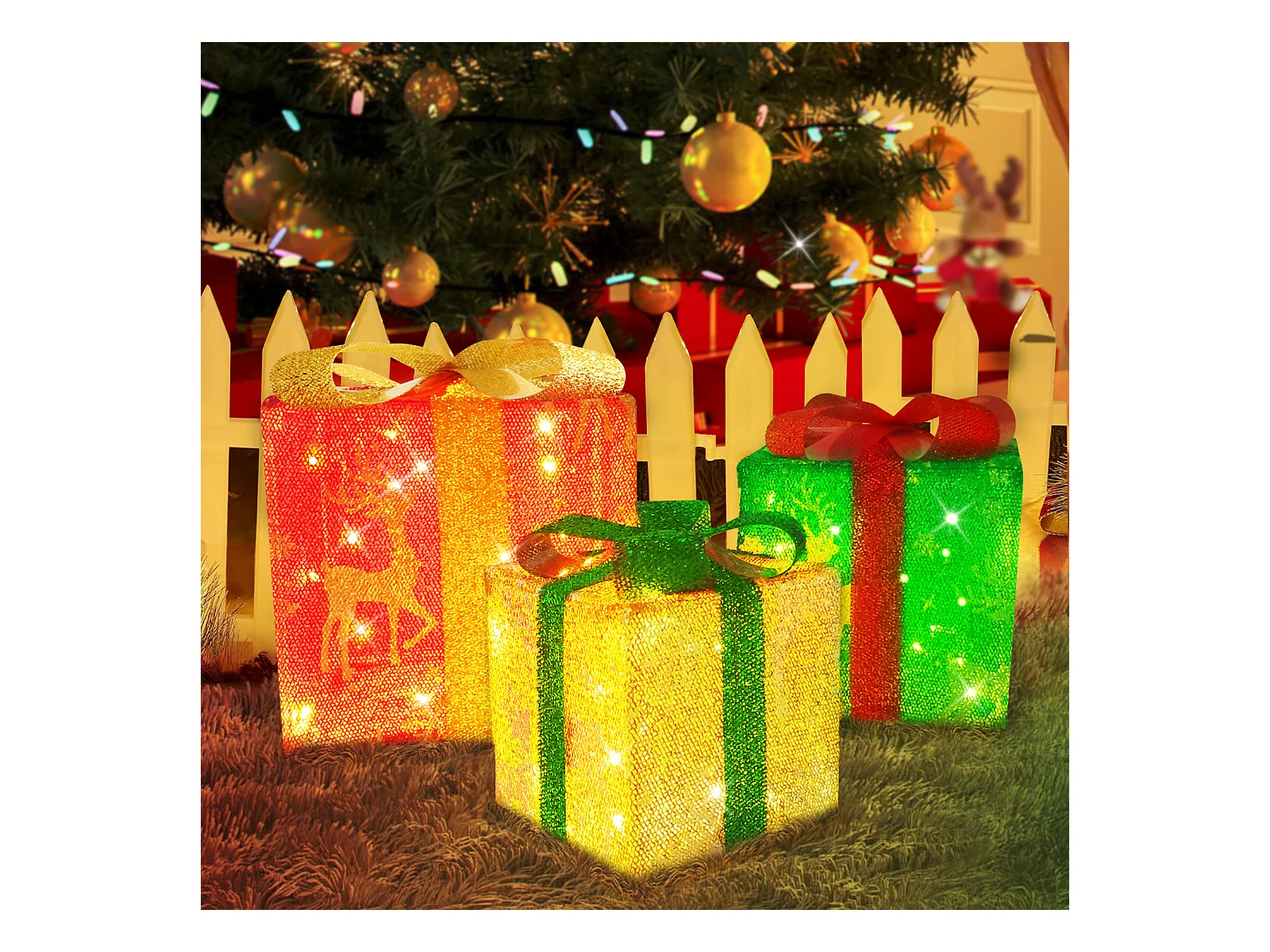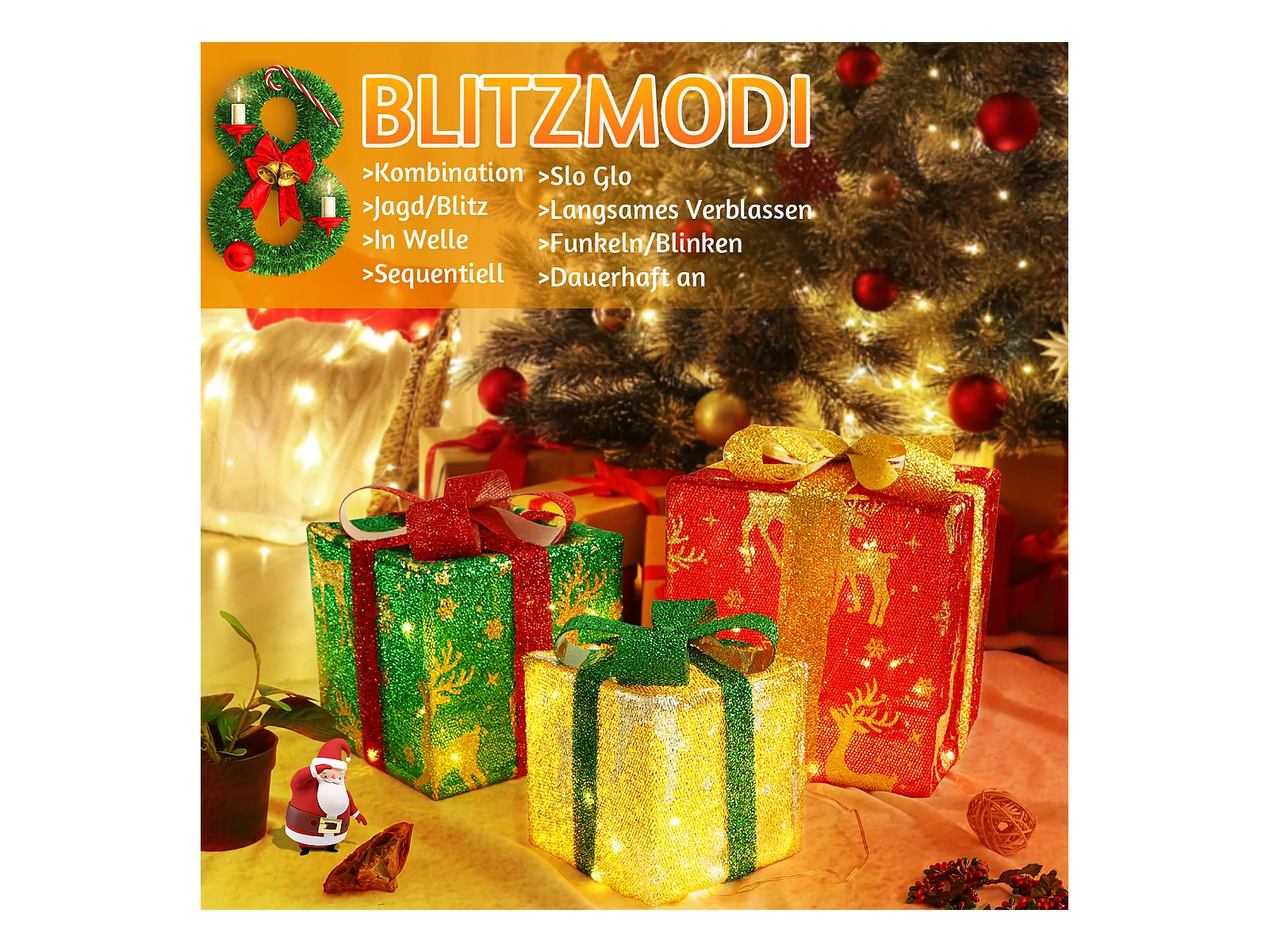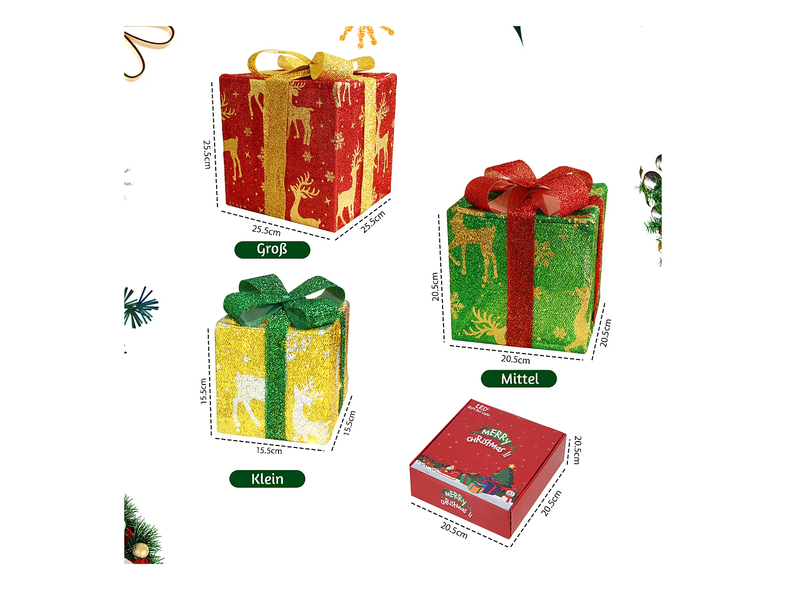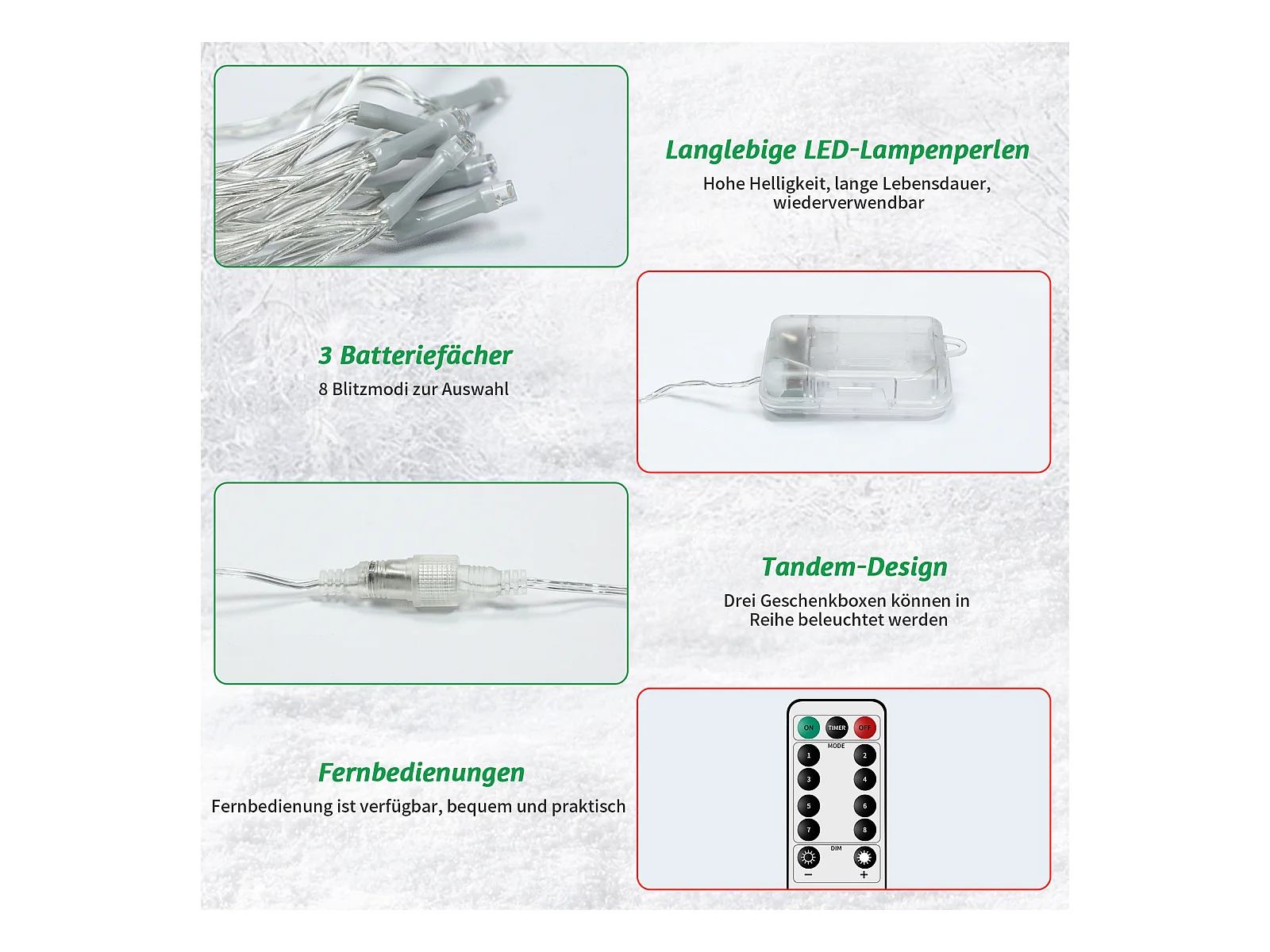 NETTLIFE Coffret cadeau LED décoration de Noël lot de 3 boîtes de Noël avec télécommande à l'intérieur batterie d'éclairage 50 LED