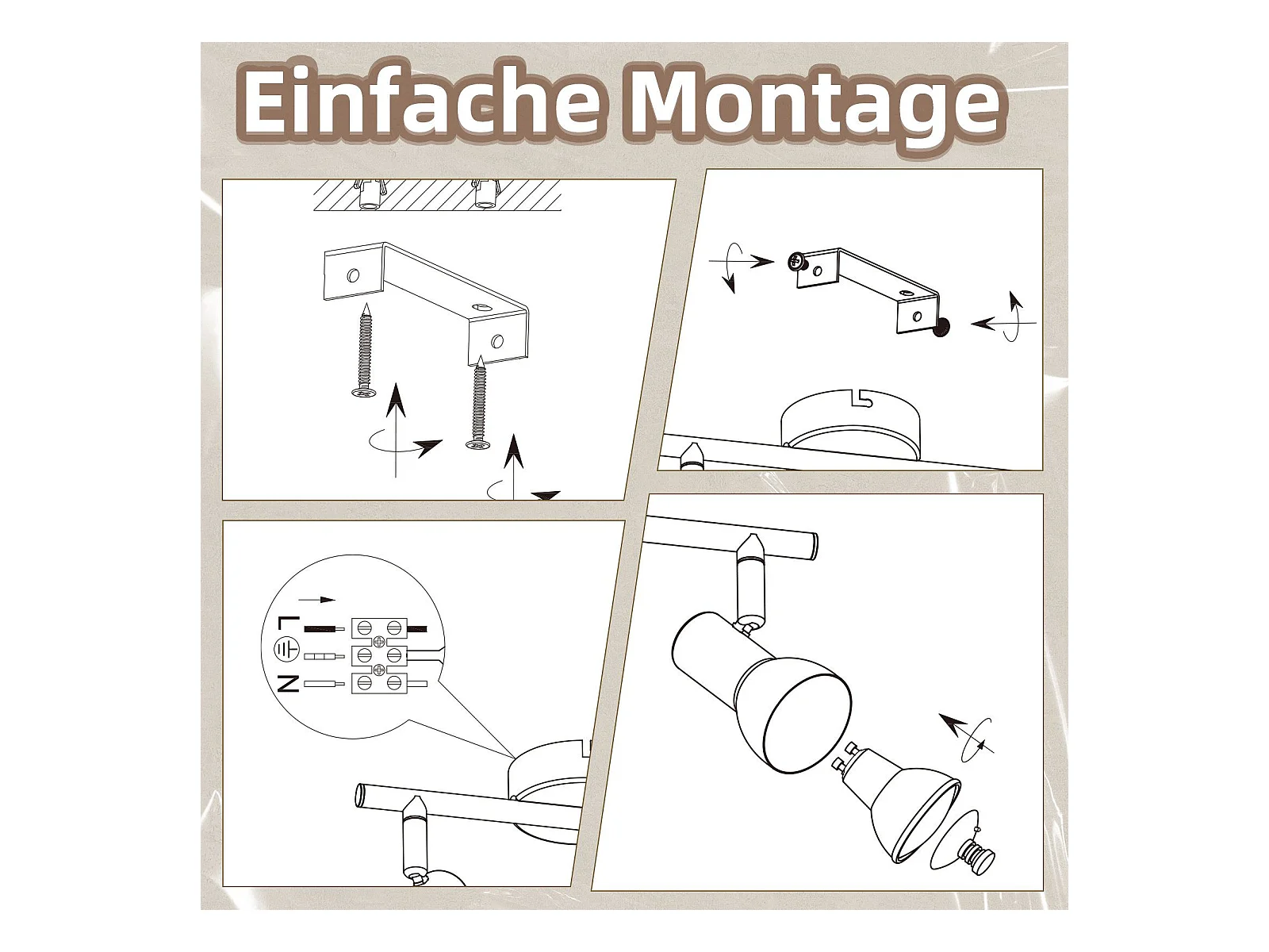 Spot de plafond NETTLIFE 4 flammes GU10, design moderne, en métal, pour salon, couloir