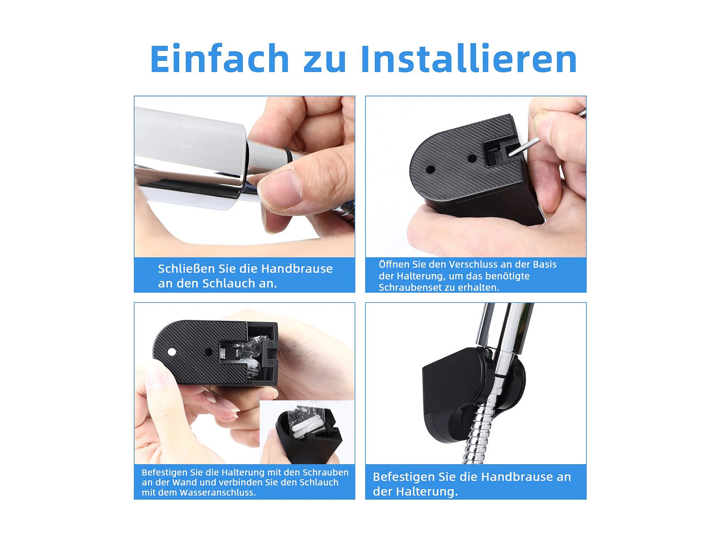 NETTLIFE Douchette à main noire douchette à économie d'eau avec 3 jets de forme carrée