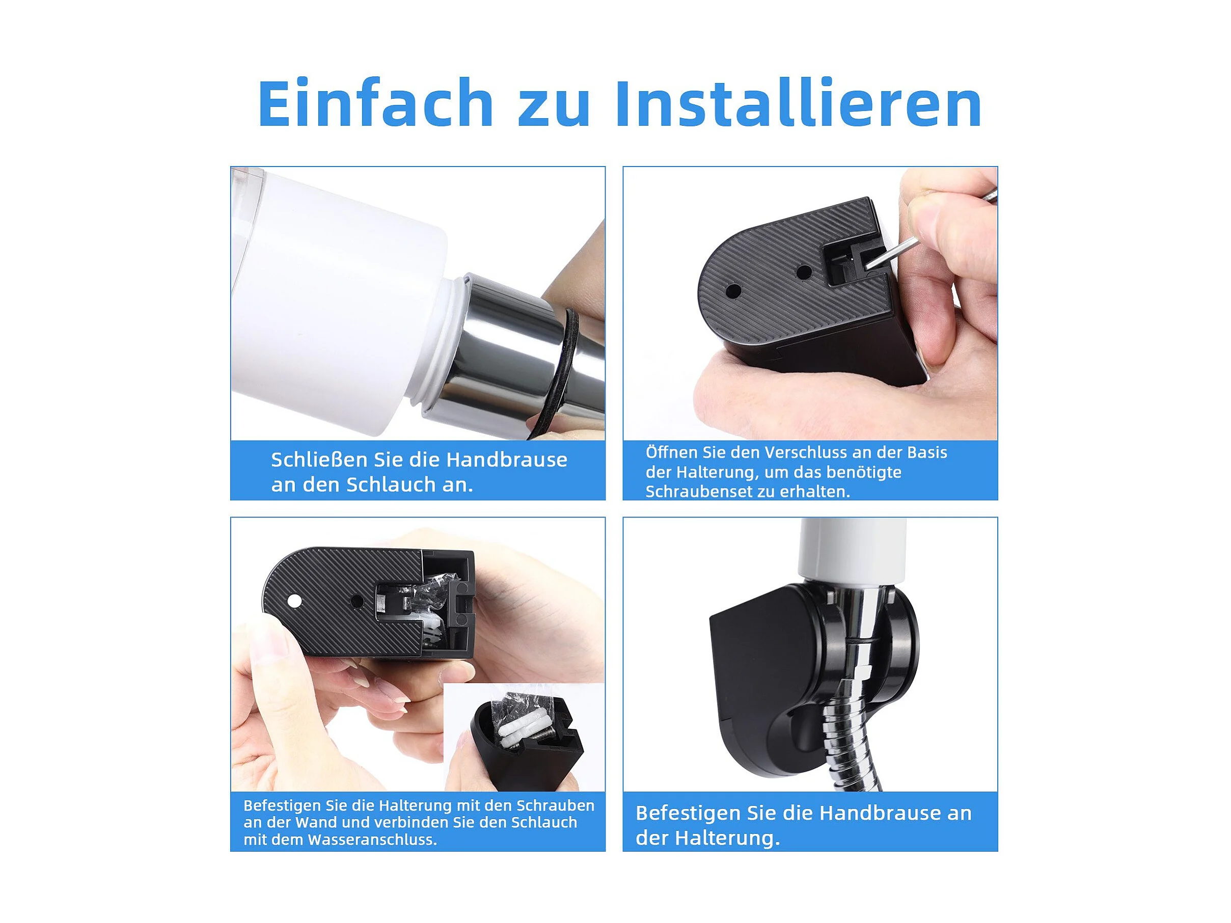 NETTLIFE Douchette à main noire douchette à économie d'eau avec 3 jets de forme carrée