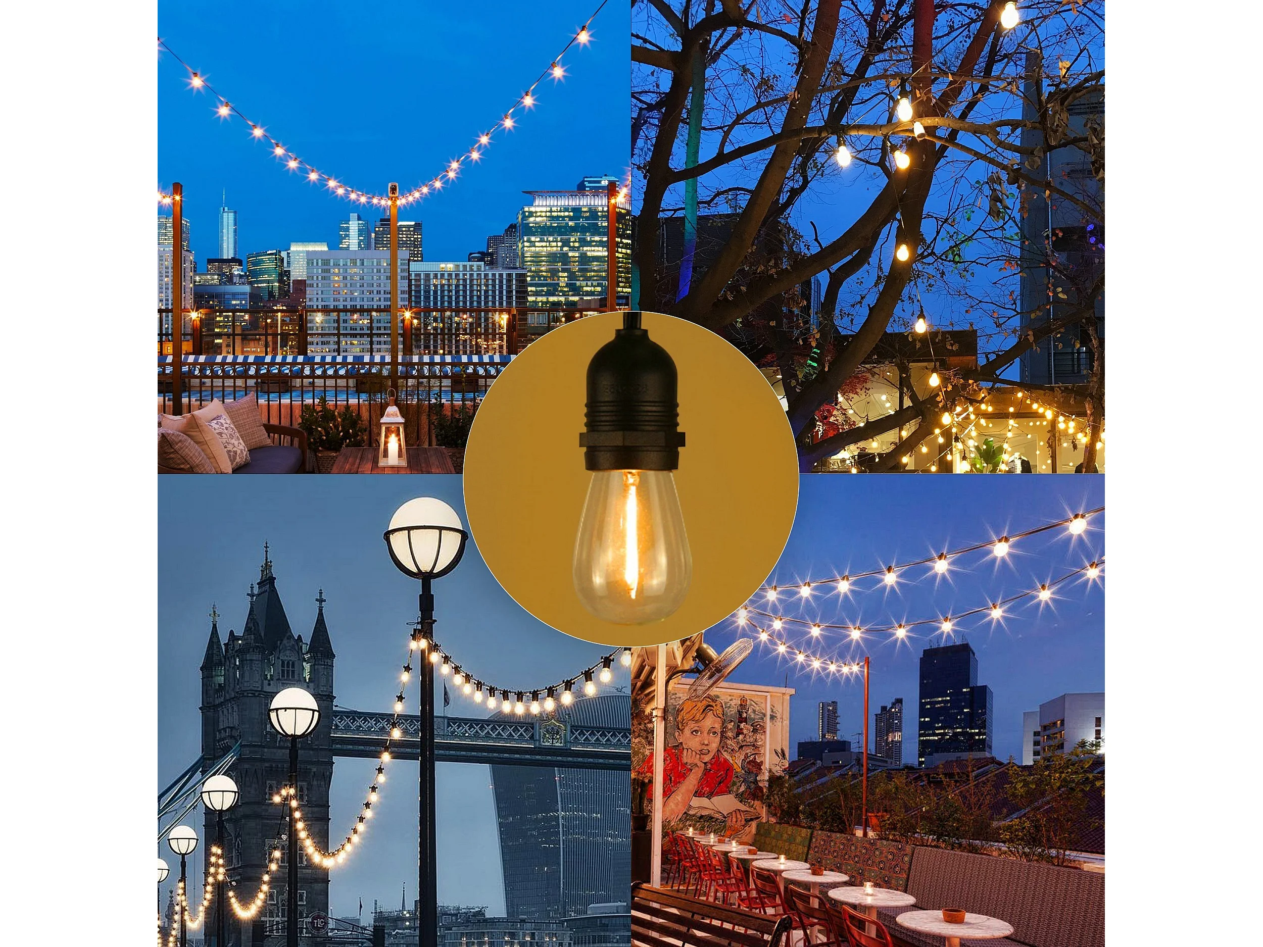 NETTLIFE Guirlande lumineuse LED Intérieur Extérieur Ampoules Guirlande lumineuse 7,6 m/15 m 16-flamme, Décoration de Noël