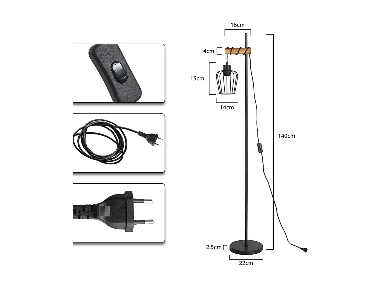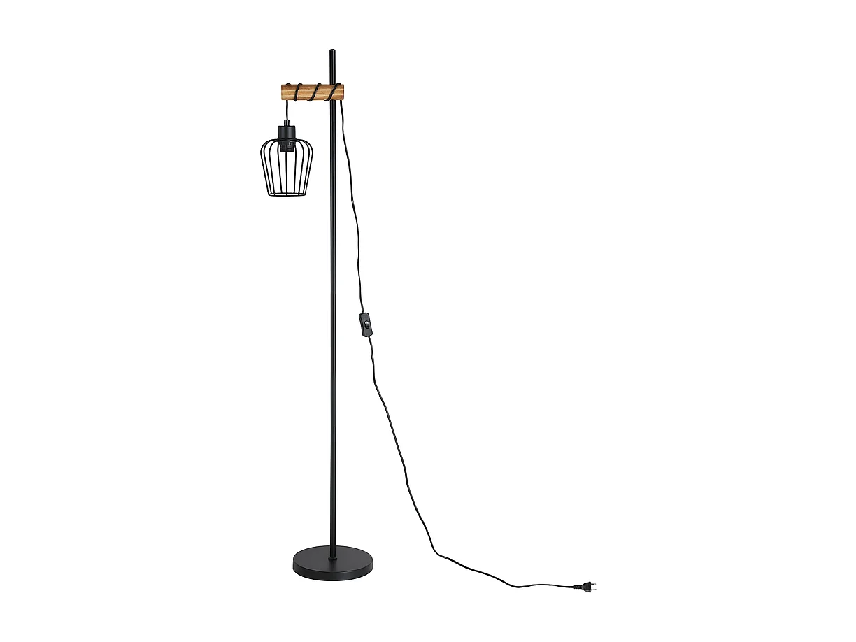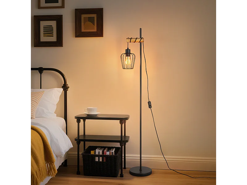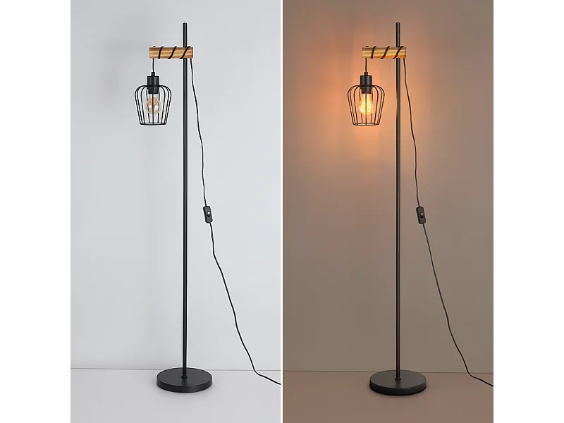 NETTLIFE lampadaire salon lampadaire noir : lampadaire bois métal industriel e27 lampadaire 2 lumières avec abat-jour cage 152cm (sans ampoule)