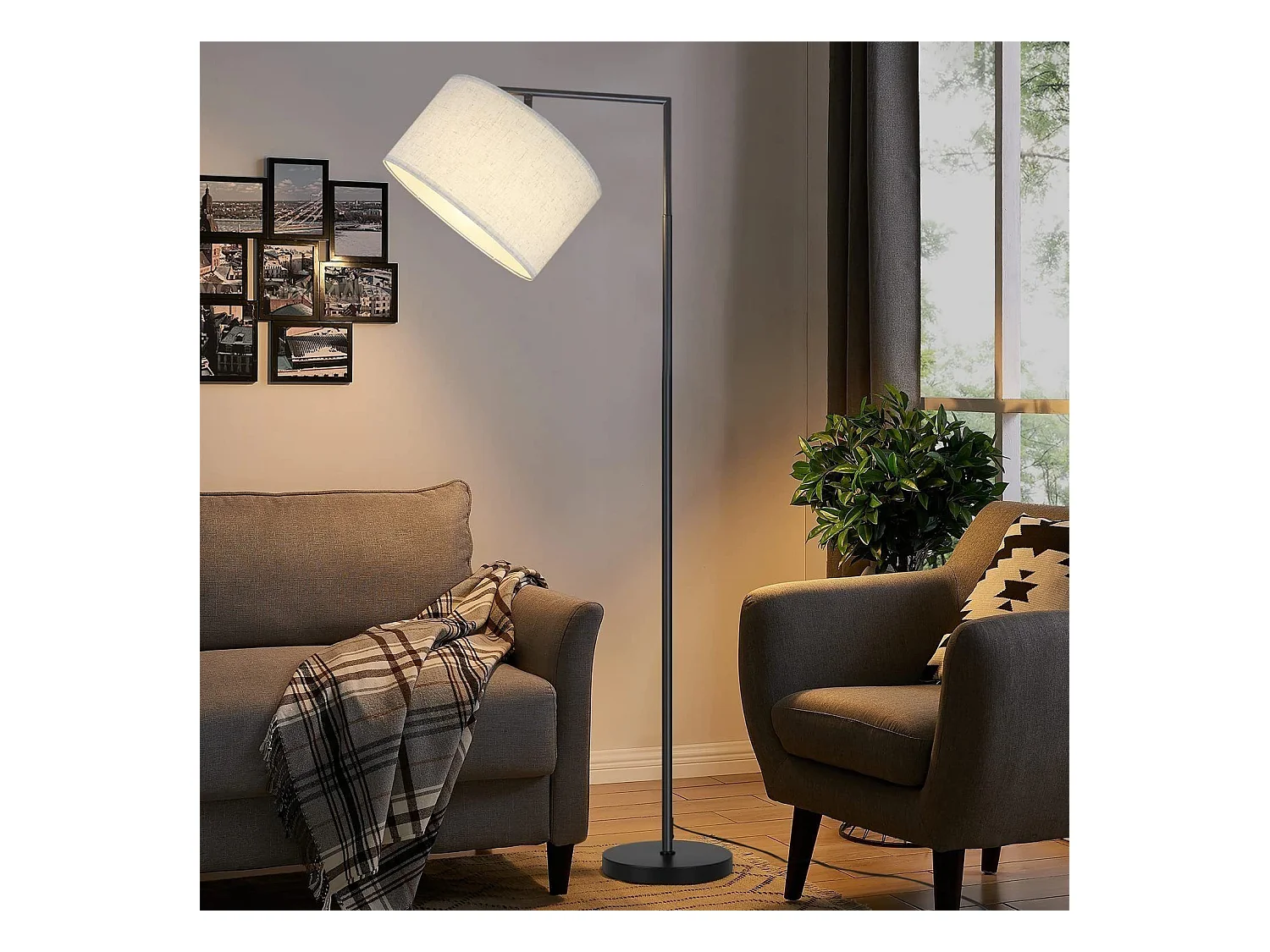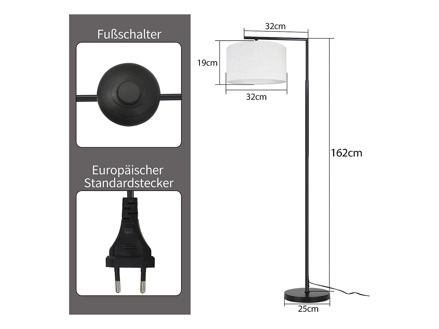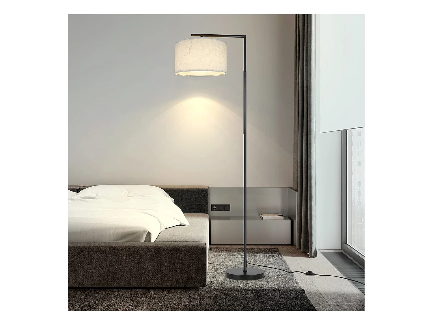 NETTLIFE Lampadaire E27 lampe sur Pied interrupteur pied 166cm abat-jour tissu design max. 40W - sans ampoule