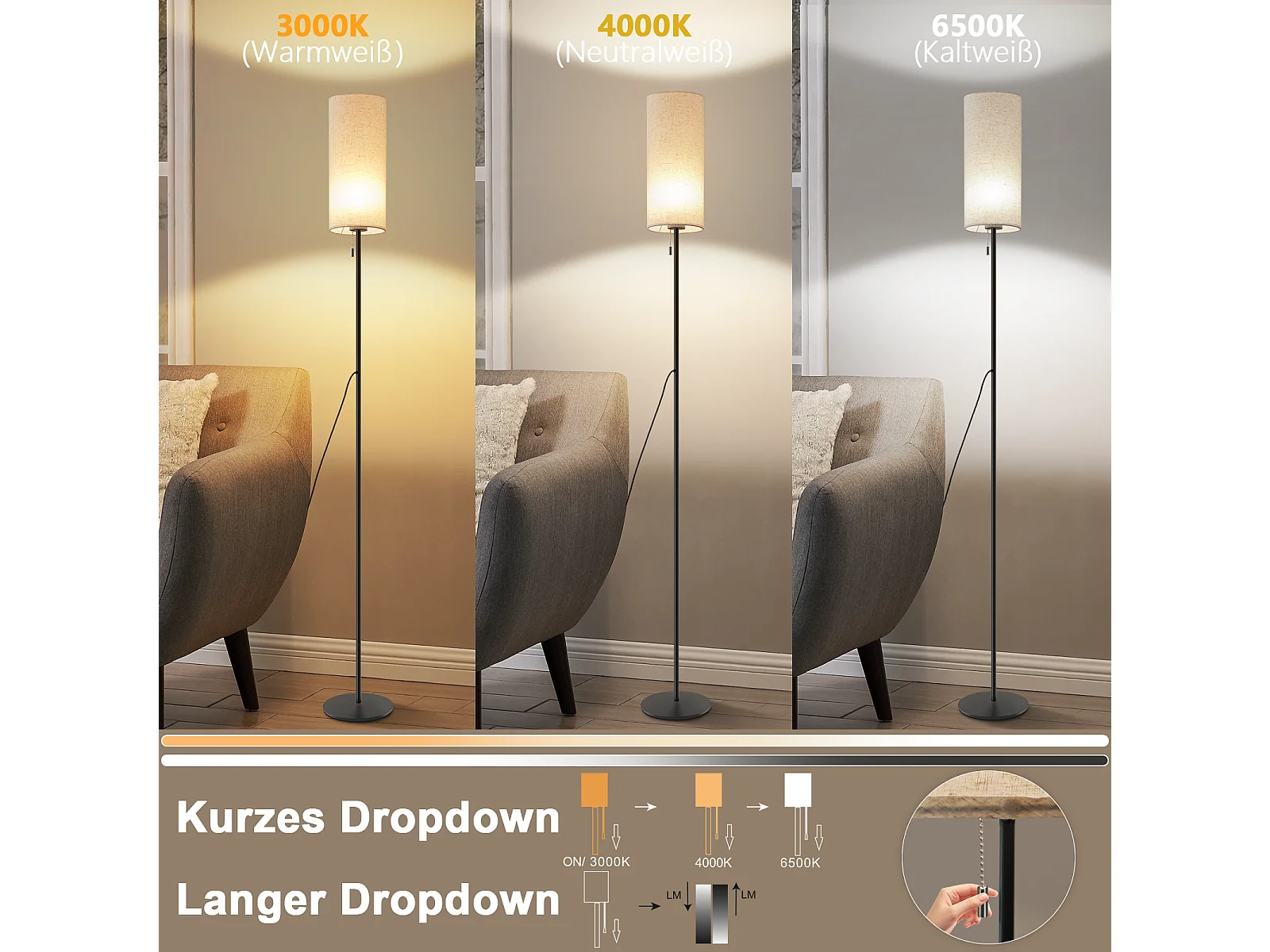 NETTLIFE Lampadaire LED à Intensité Variable Rétro Abat-jour En Tissu Pour Salon Avec Interrupteur à Tirette