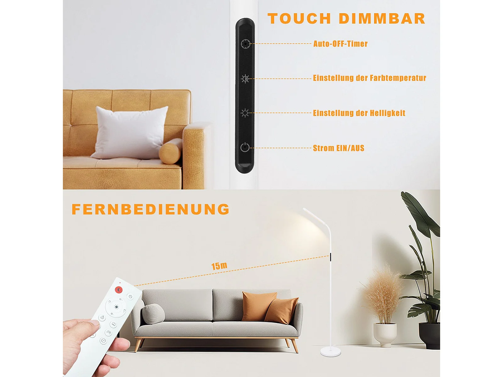 NETTLIFE Lampadaire LED Salon dimmable- 158CM Moderne réglables Lampadaire tactile 9W avec minuterie & fonction mémoire
