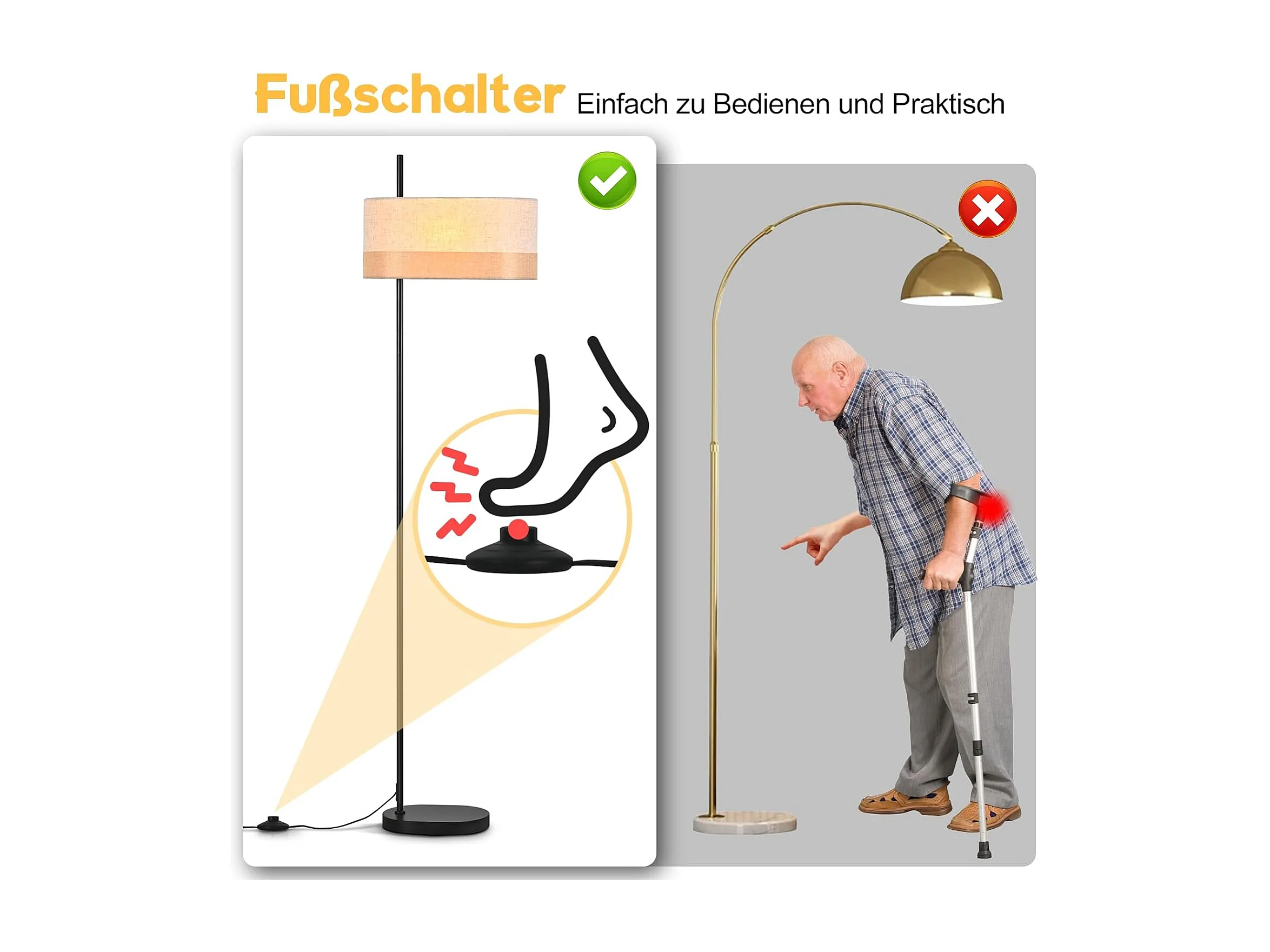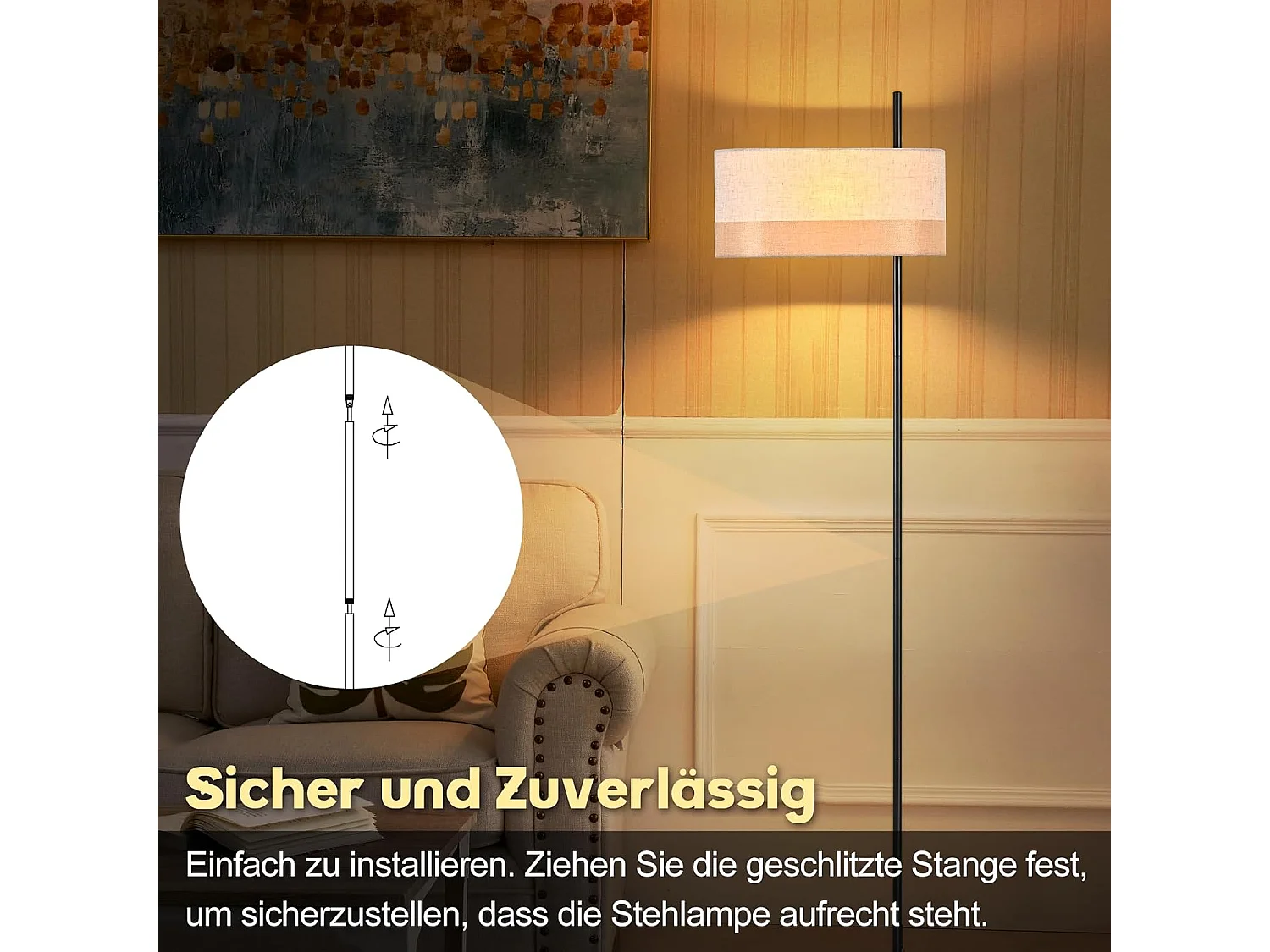Nettlife Lampadaire Vintage Salon - Lampe sur Pied Tissu Blanc E27 Interrupteur à Pied, Rustique Rétro pour Chambre (Sans Ampoule)