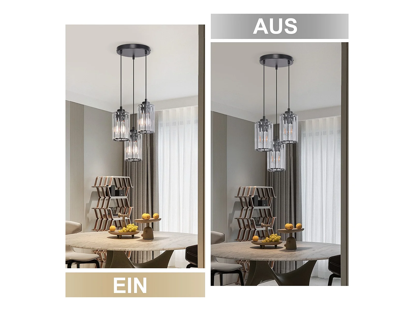 NETTLIFE Lampe à Suspension Pour Table à Manger En Cristal Noir Moderne 3 Flammes E27