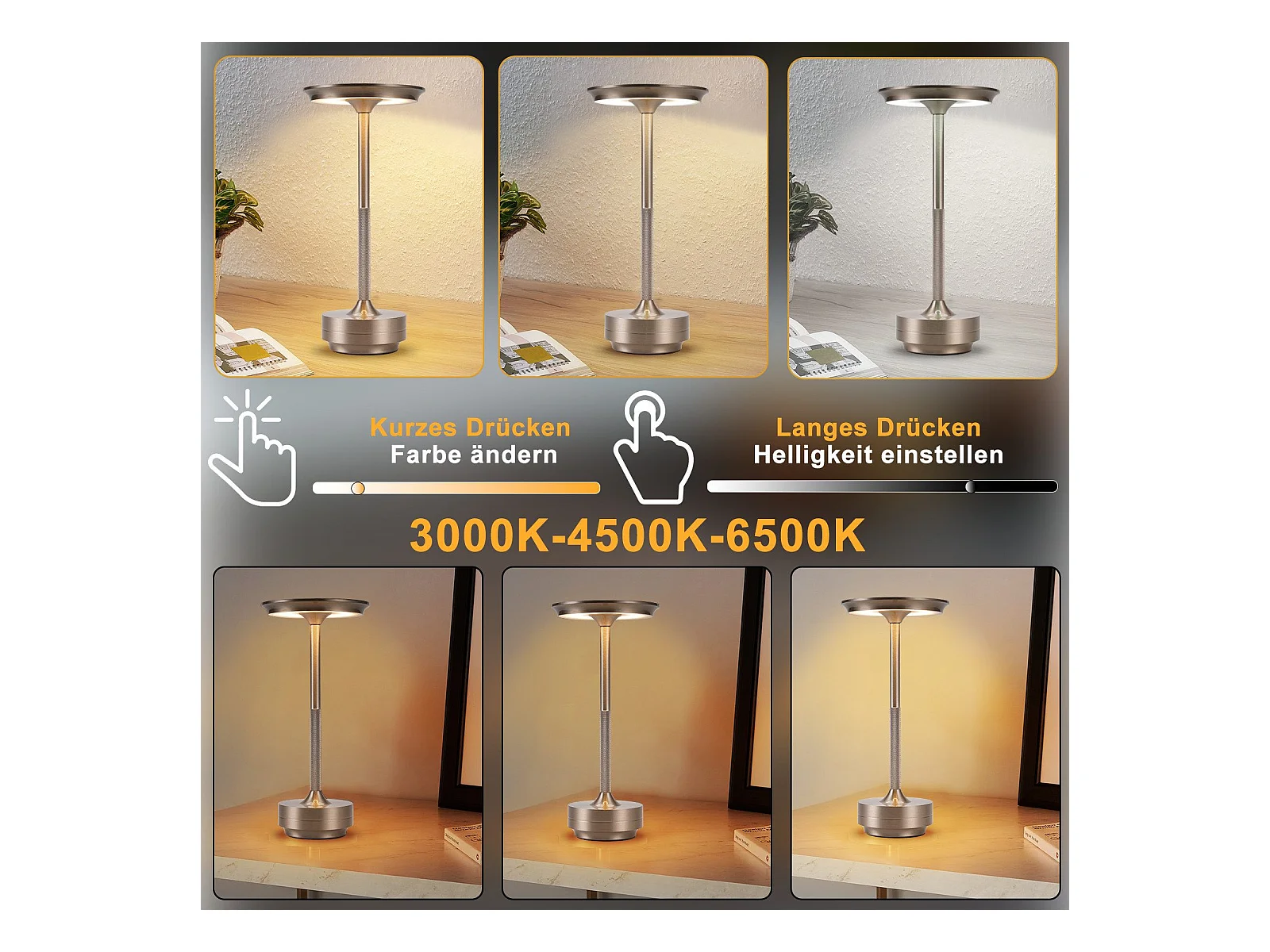 NETTLIFE Lampe de table sans fil, lampe de chevet LED, batterie 1800mhA, rechargeable, tactile, dimmable, moderne, IP44, avec USB