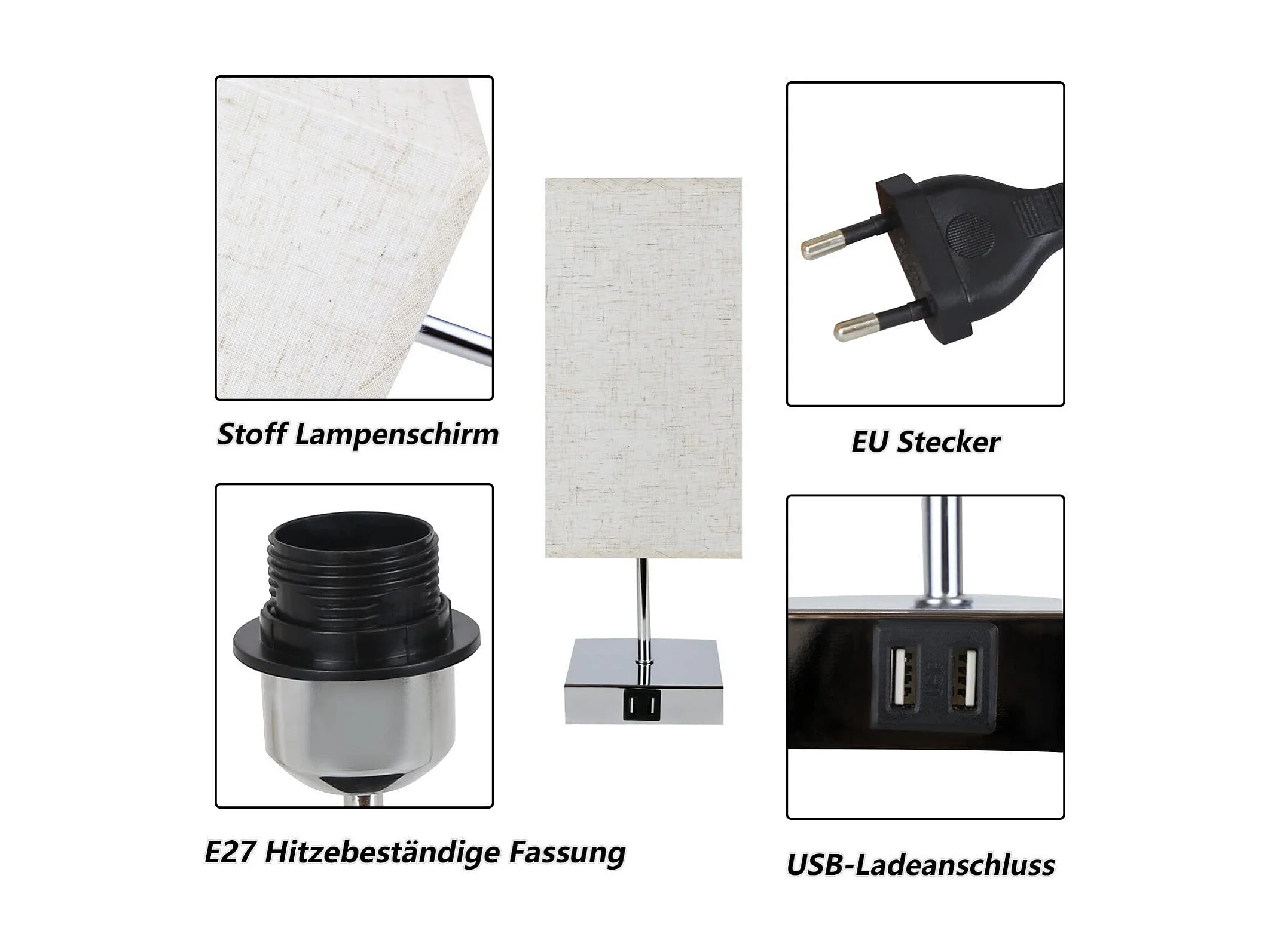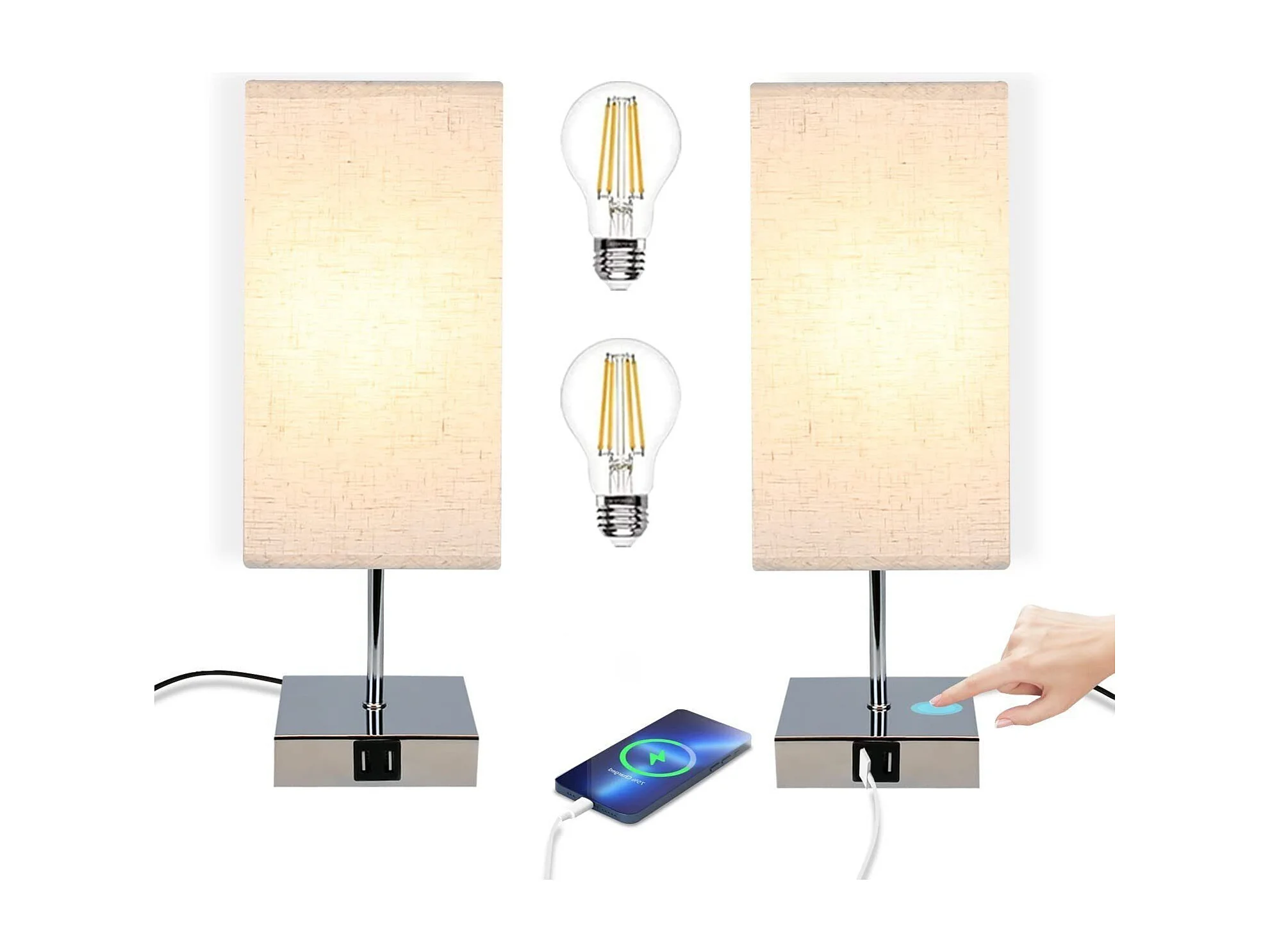 NETTLIFE Lampe de chevet tactile à intensité variable vintage E27 avec fonction de chargement USB LED modifiable