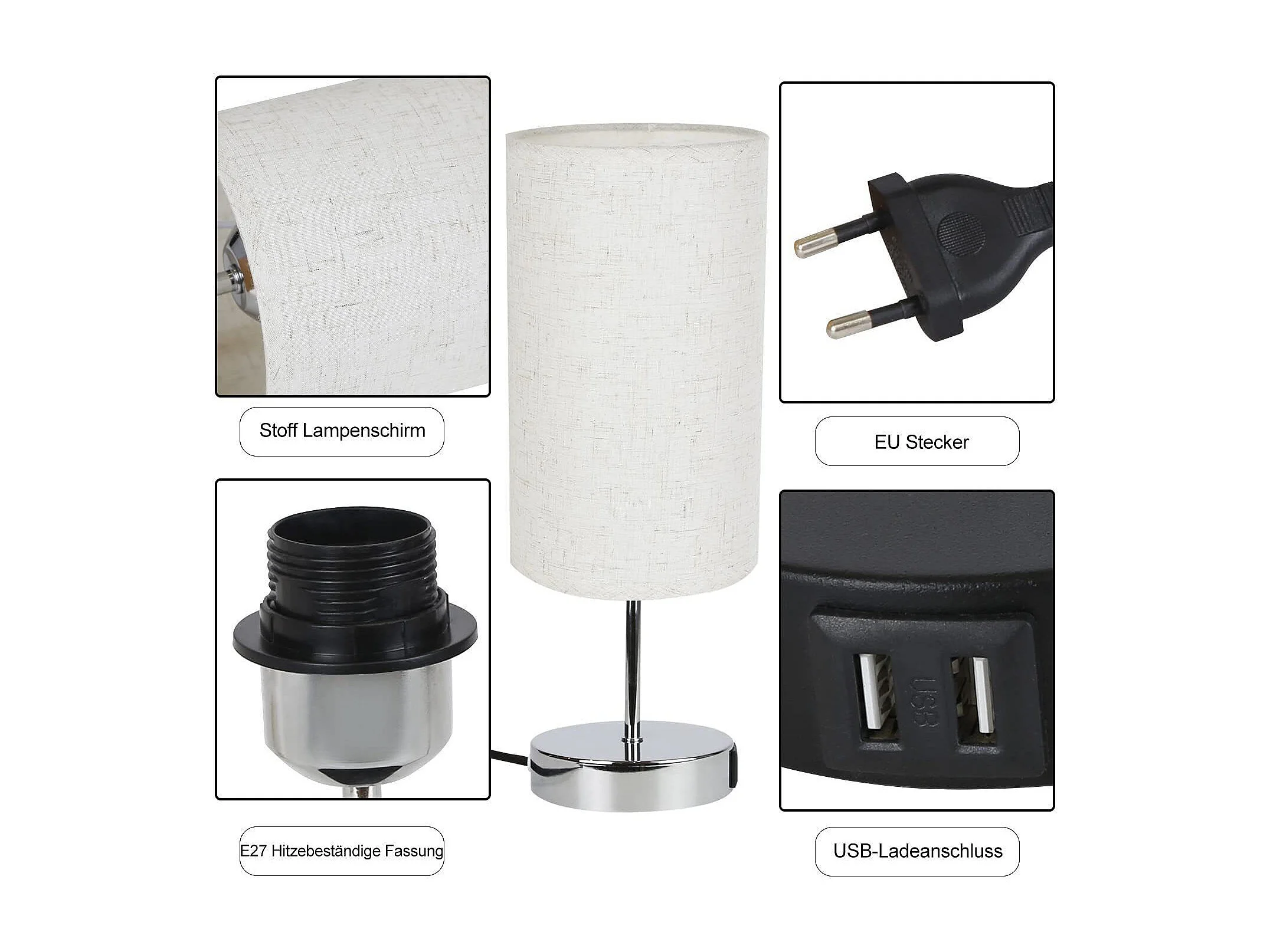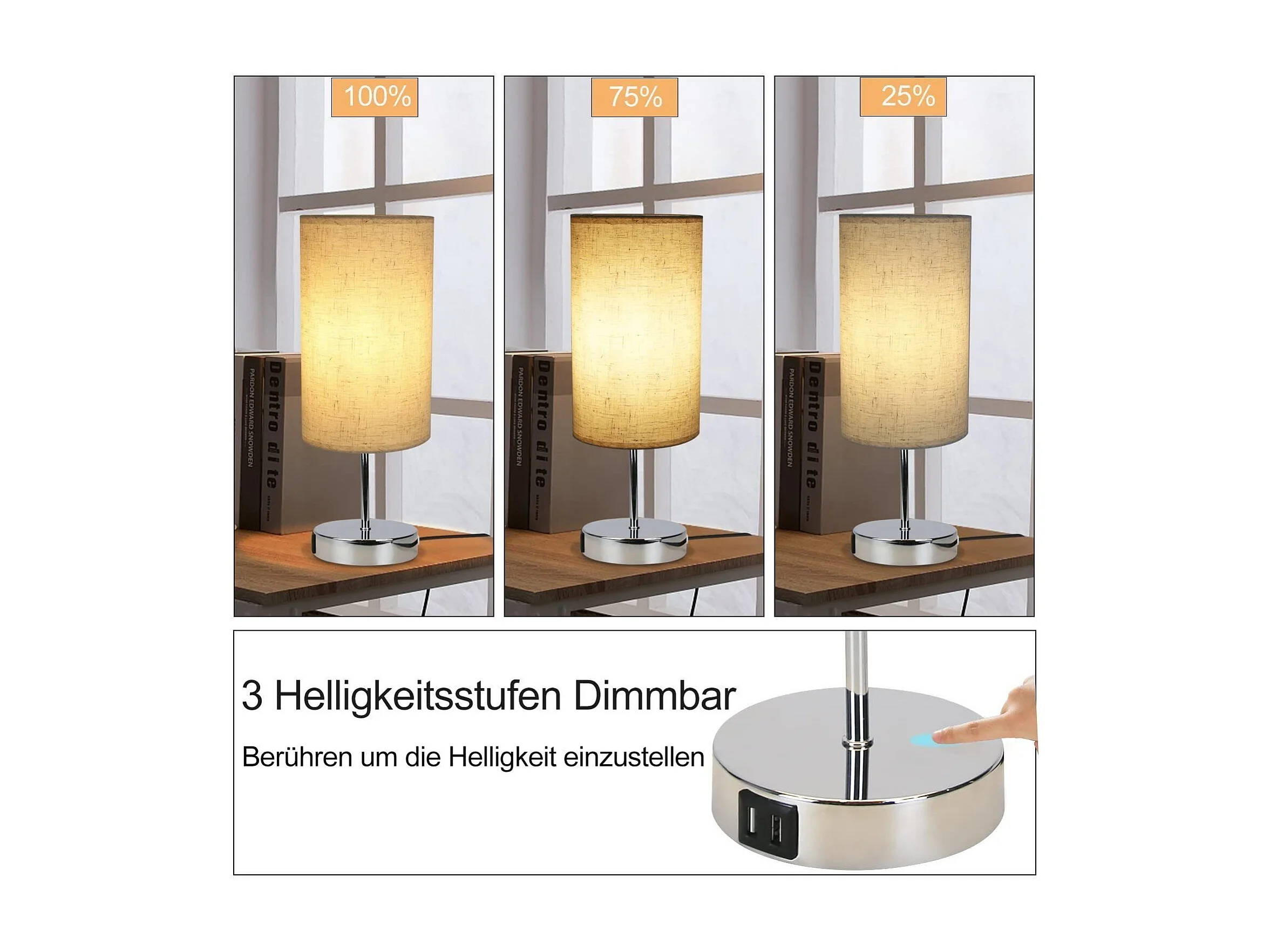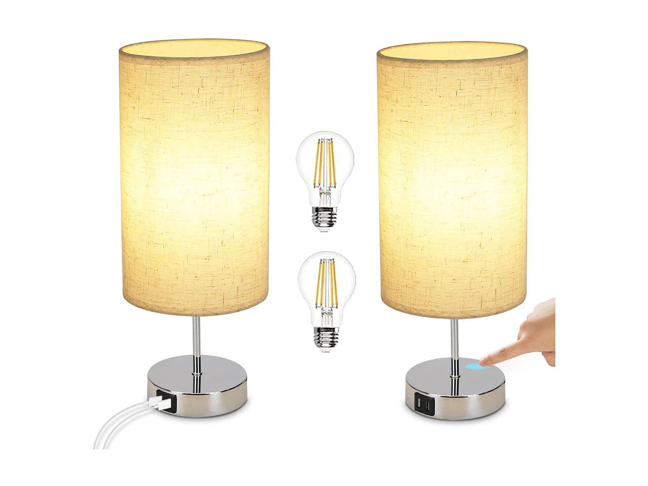 NETTLIFE Lampe de chevet tactile dimmable vintage E27 avec fonction de charge USB LED blanc chaud variable