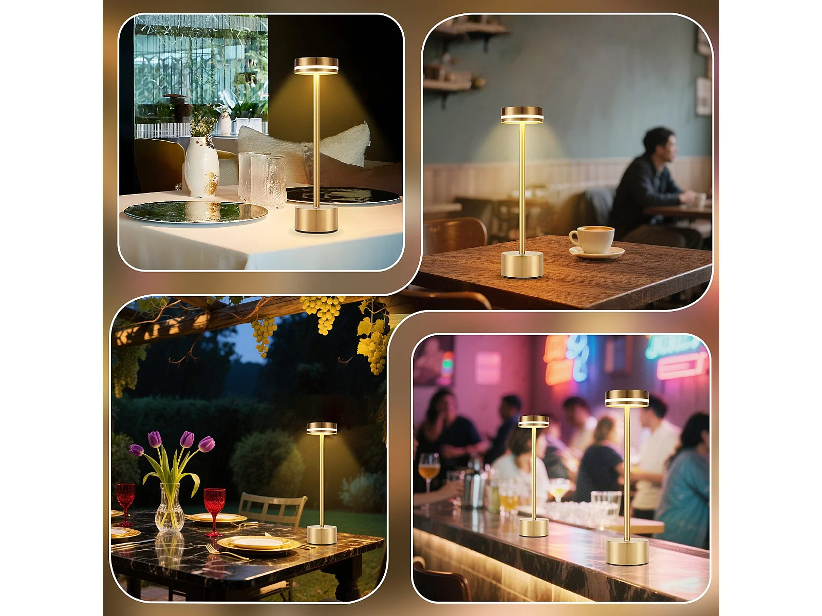 NETTLIFE Lampe de table led sans fil, à piles, à intensité variable, rechargeable par usb-c, tactile, dorée, pour chambre, (dorée, lot de 2)