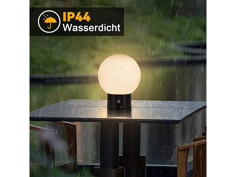 NETTLIFE lampe de table LED sans fil rechargeable – lampe tactile USB, verre blanc, dimmable 3000K–6500K, IP44, chambre & cuisine