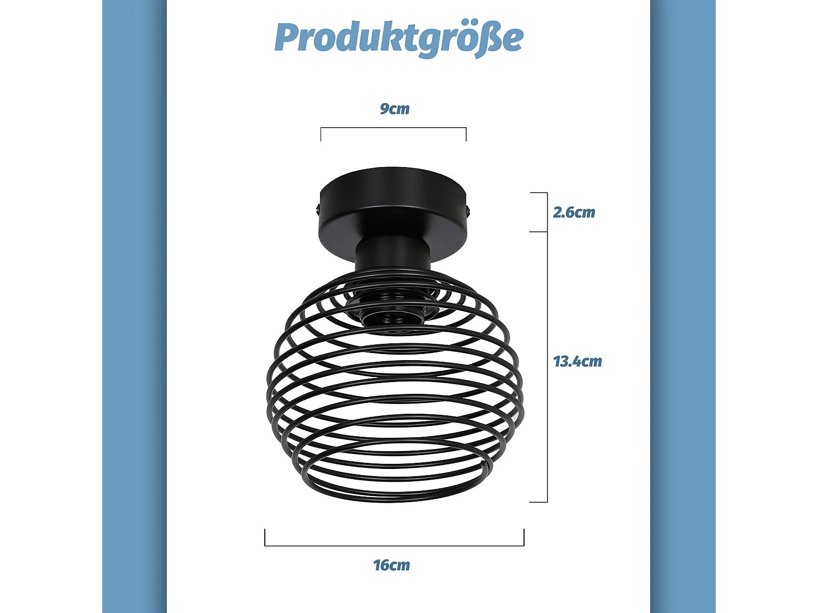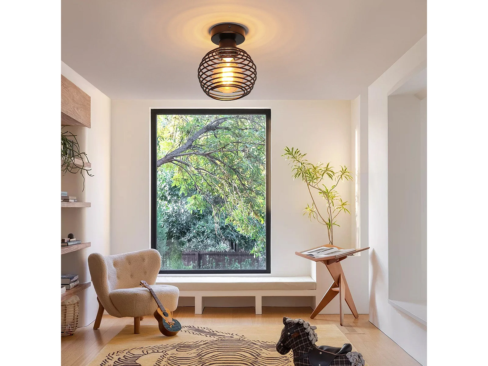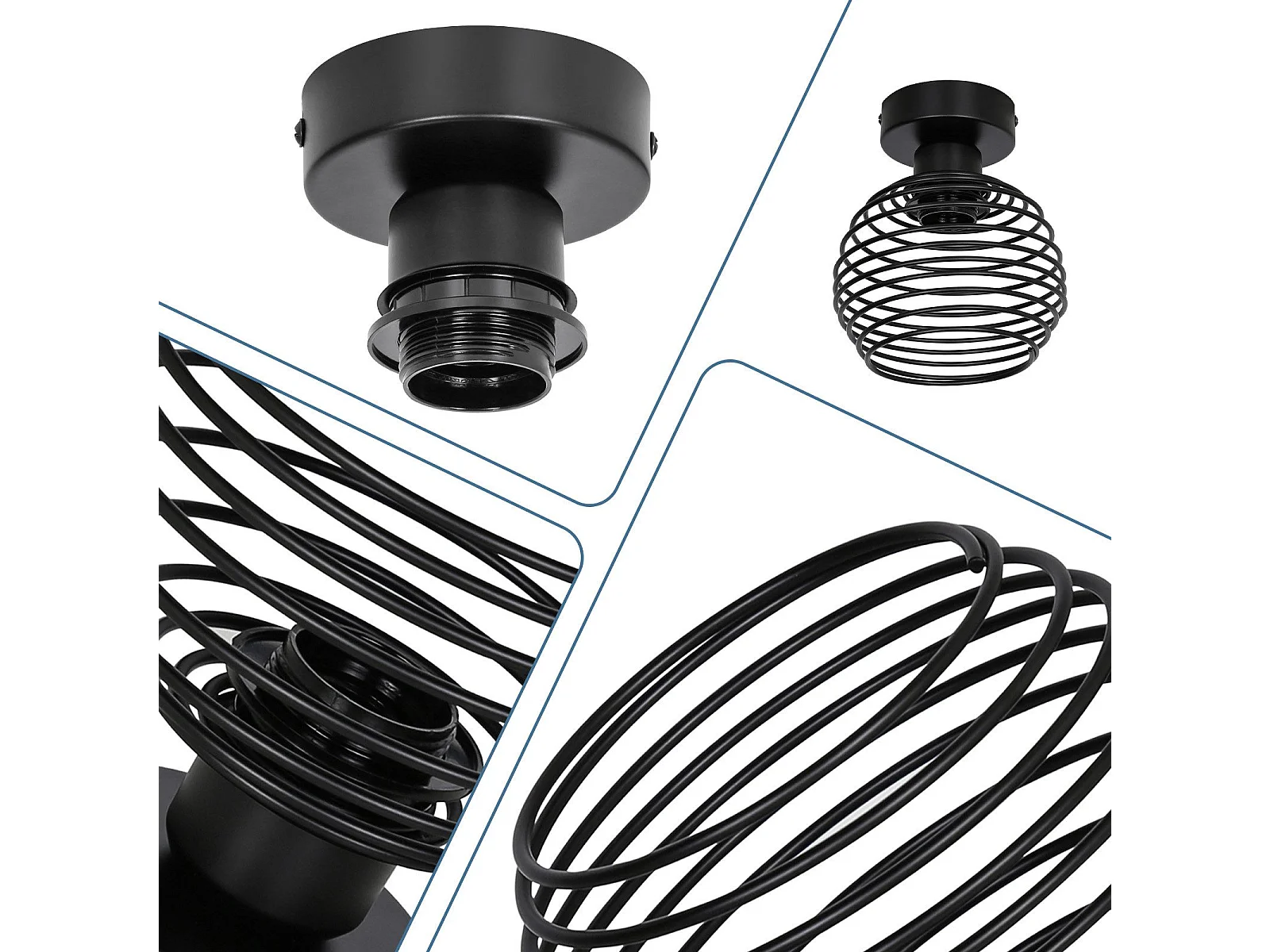 NETTLIFE Lampe vintage plafond noir, E27, métal, pour hall, escalier, balcon, cuisine, chambre
