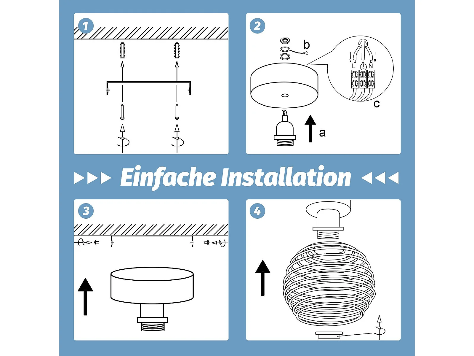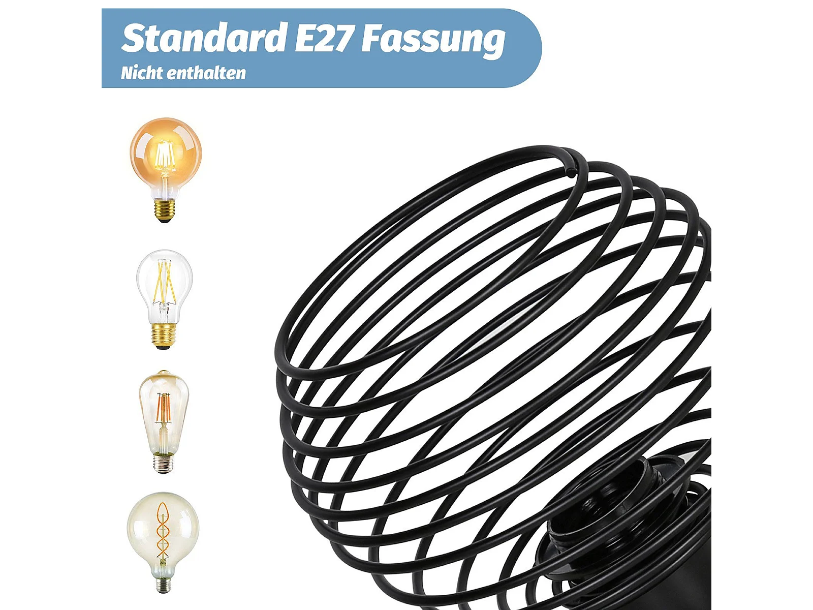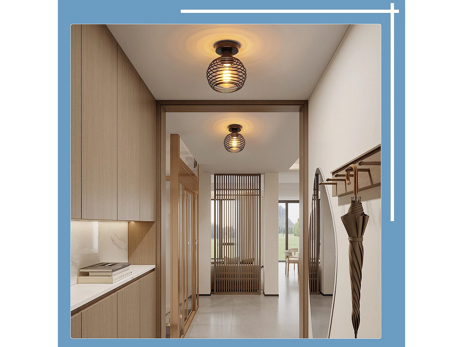 NETTLIFE Lampe vintage plafond noir, E27, métal, pour hall, escalier, balcon, cuisine, chambre