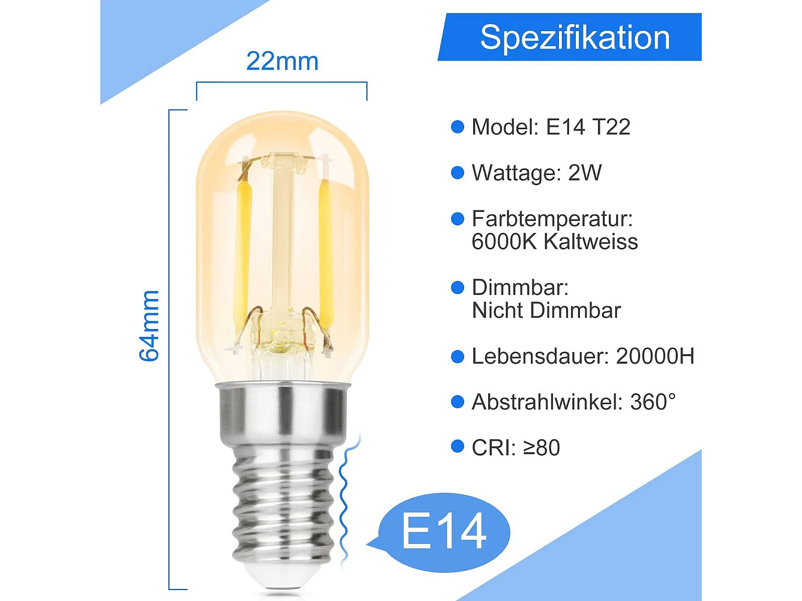 NETTLIFE Lot de 4 ampoules LED E14 blanc froid lampes vintage T22 2W rétro Edison 6000K économie d'énergie douille de lampe de réfrigérateur