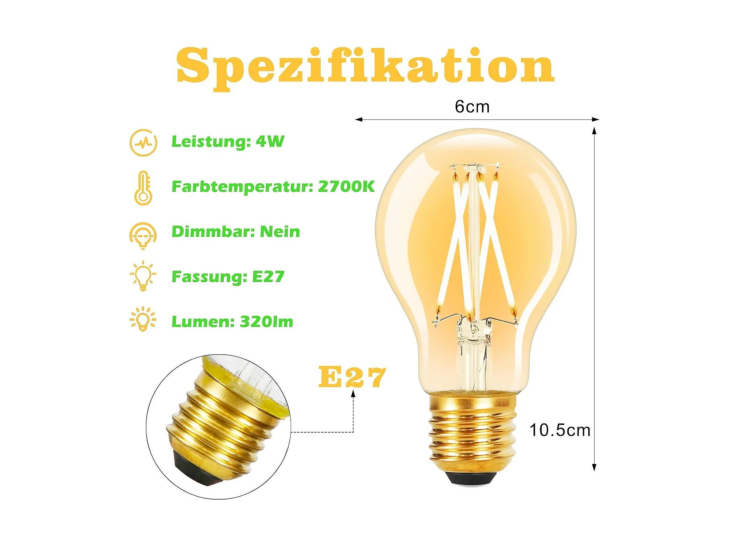 NETTLIFE Lot de 6 ampoules LED E27 : lampe vintage A60 Edison de 4W 2700K blanc chaud à filament rétro économie d'énergie pour maison non dimmable