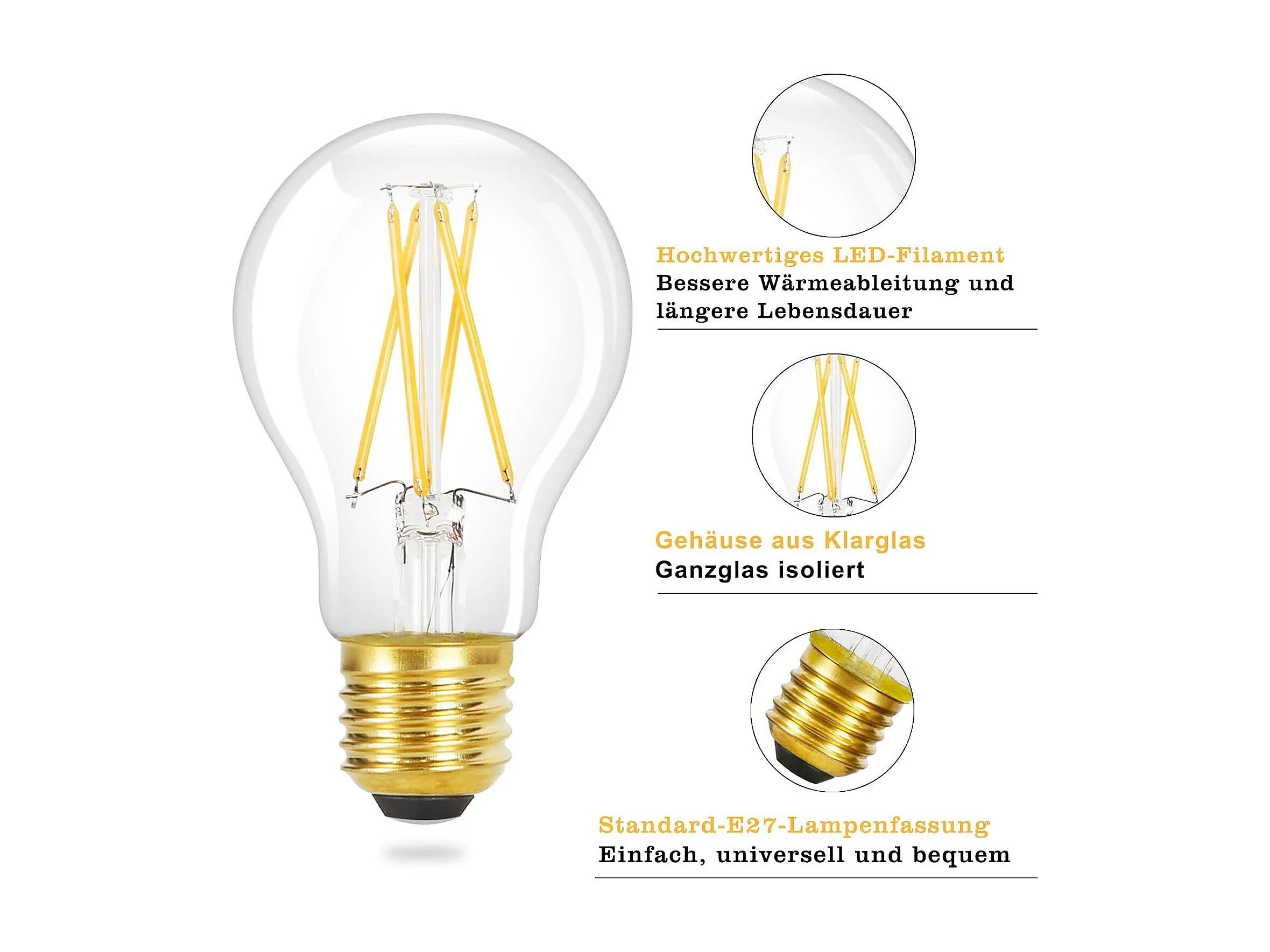 NETTLIFE Lot de 6 ampoules LED E27 vintage : ampoule A60 2700K 4W Edison à filament blanc chaud lampe antique en verre à économie d'énergie pour