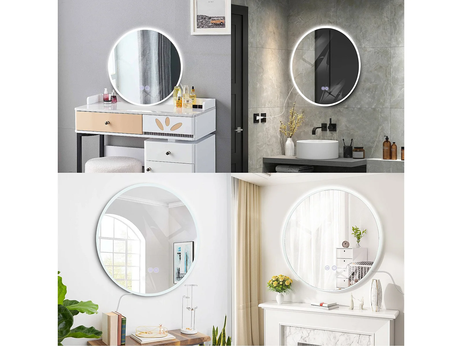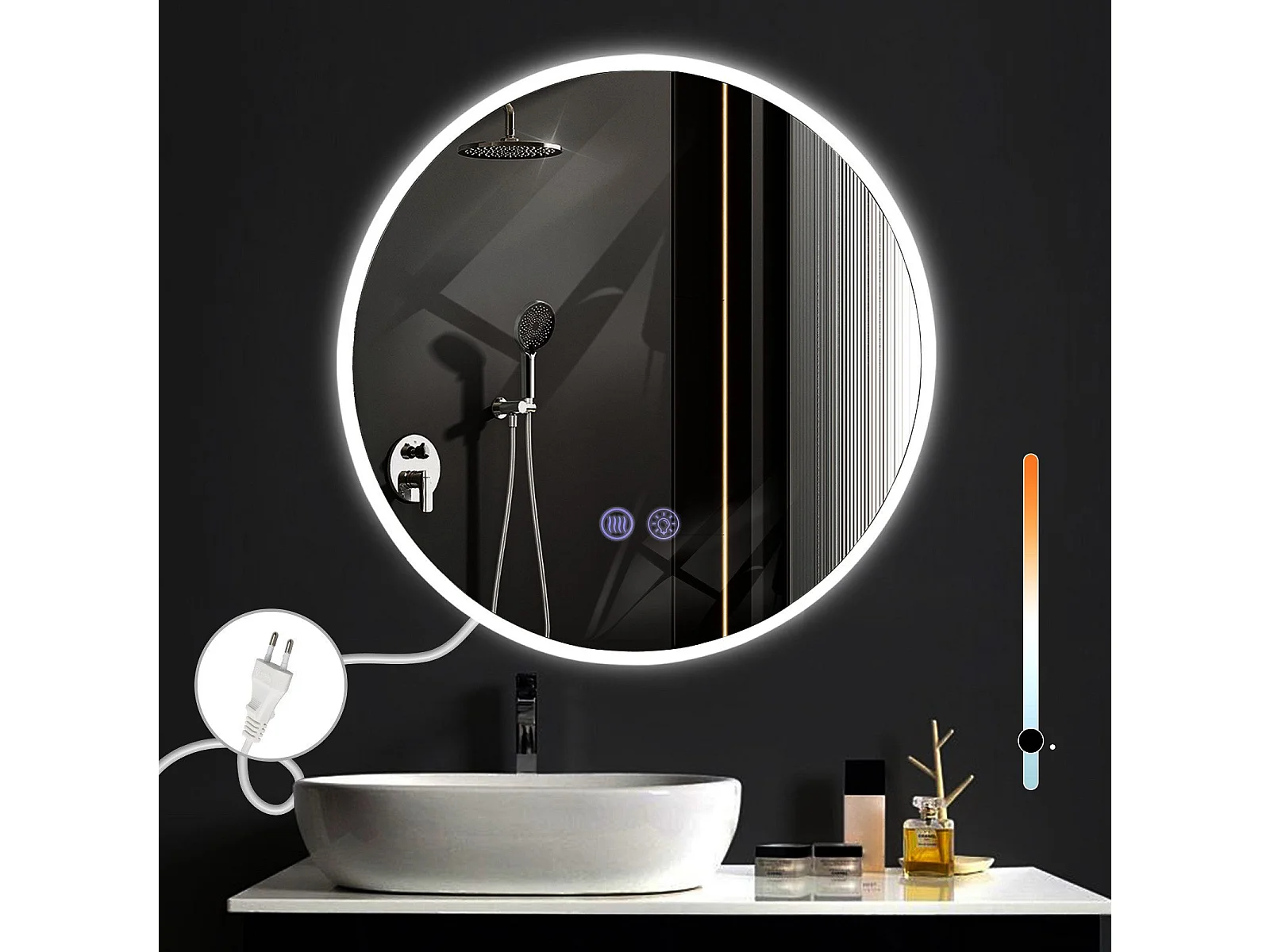 NETTLIFE Miroir avec éclairage rond Miroir mural LED IP44 50 cm avec fonction miroir tactile éclairé rond avec lumière dimmable