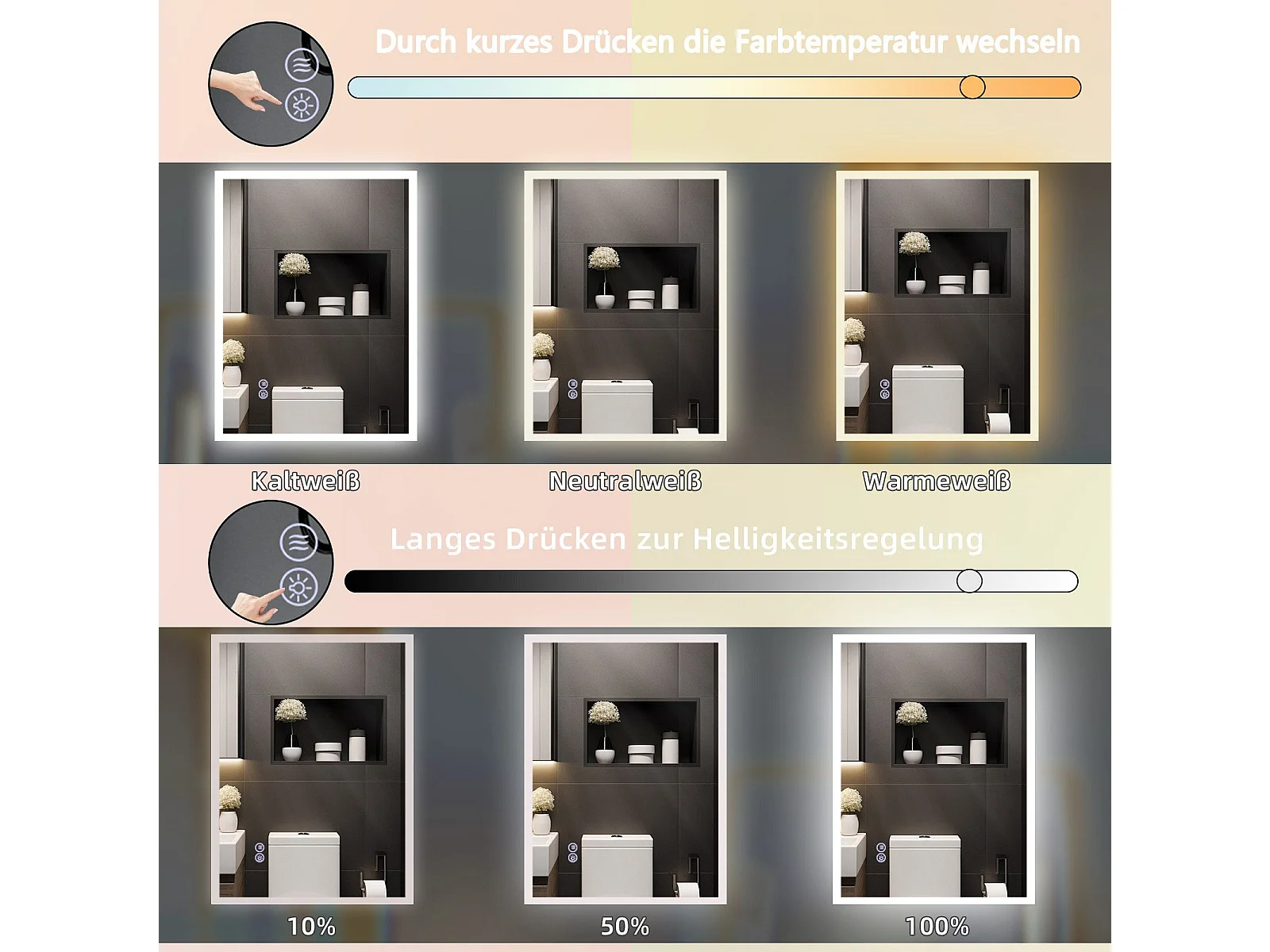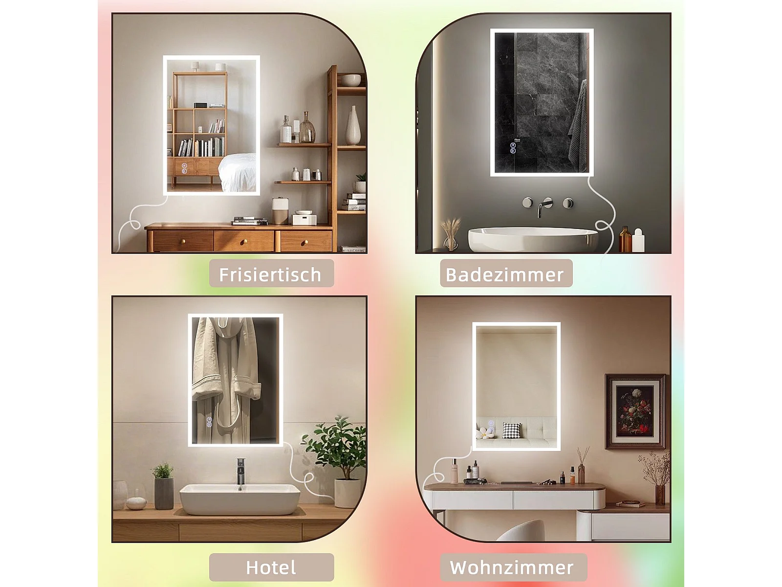 NETTLIFE Miroir avec lumière 50x70cm Miroir mural LED Verre antidéflagrant Miroir de salle de bain avec miroir tactile