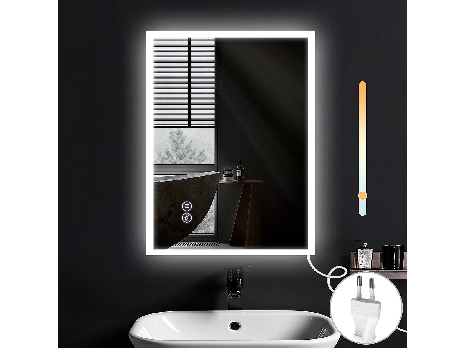 NETTLIFE Miroir avec lumière - 60x80cm Miroir mural LED Verre antidéflagrant Miroir de salle de bain avec miroir tactile