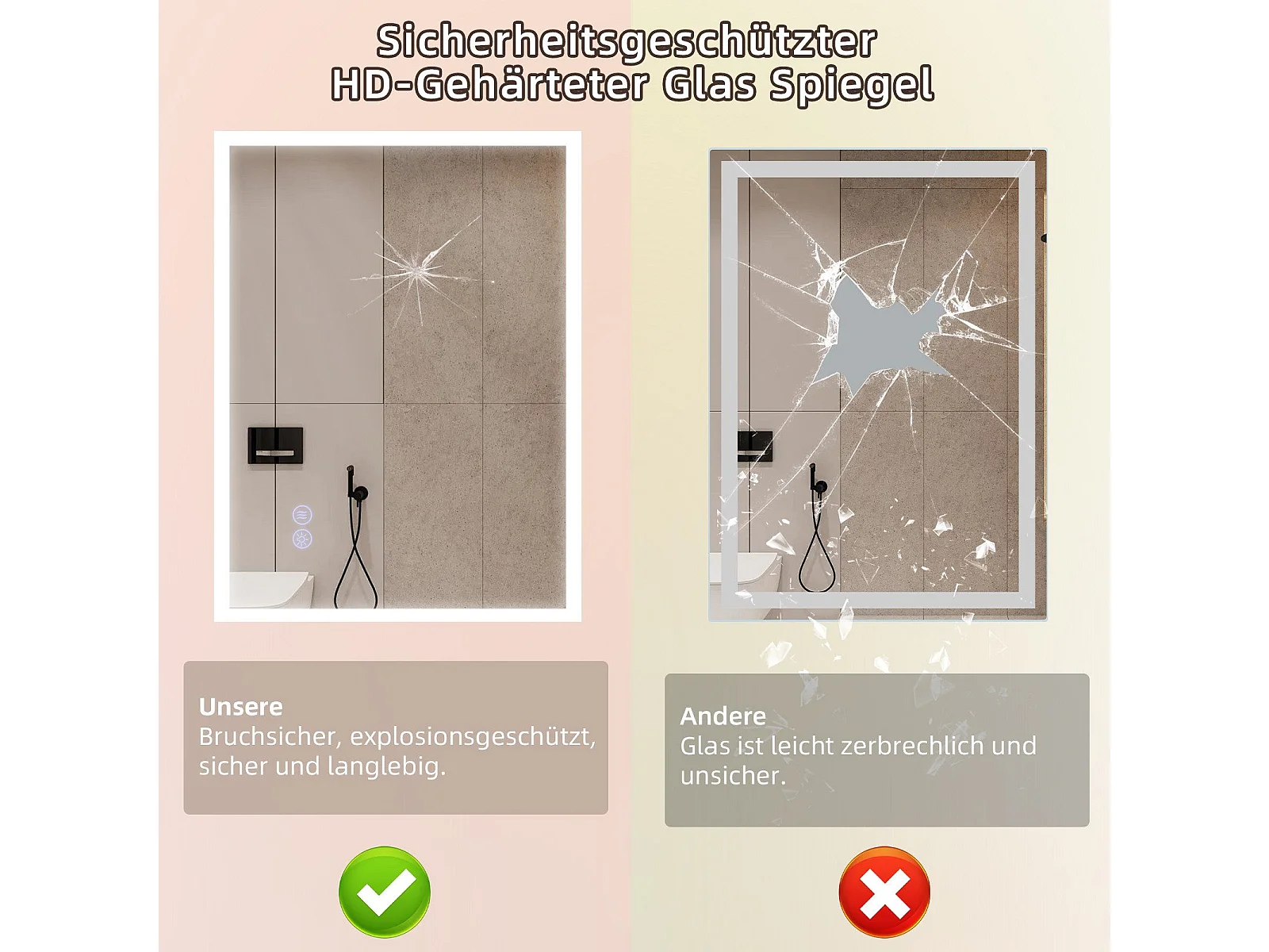 NETTLIFE Miroir avec lumière 50x70cm Miroir mural LED Verre antidéflagrant Miroir de salle de bain avec miroir tactile