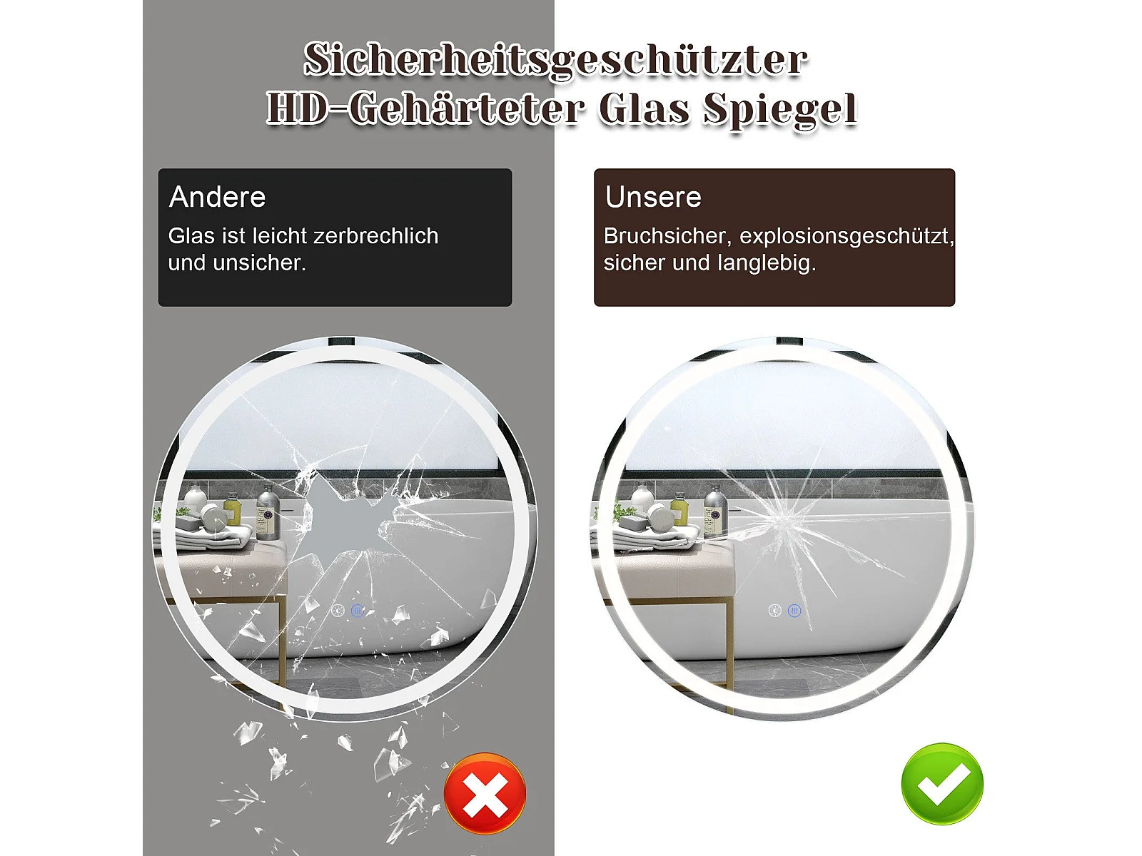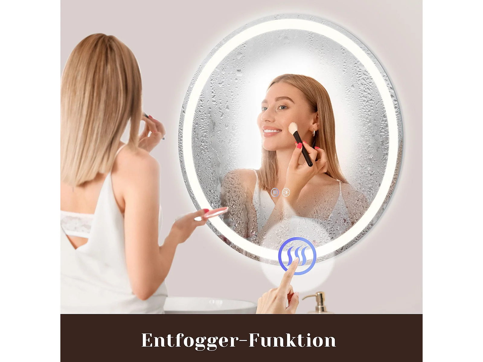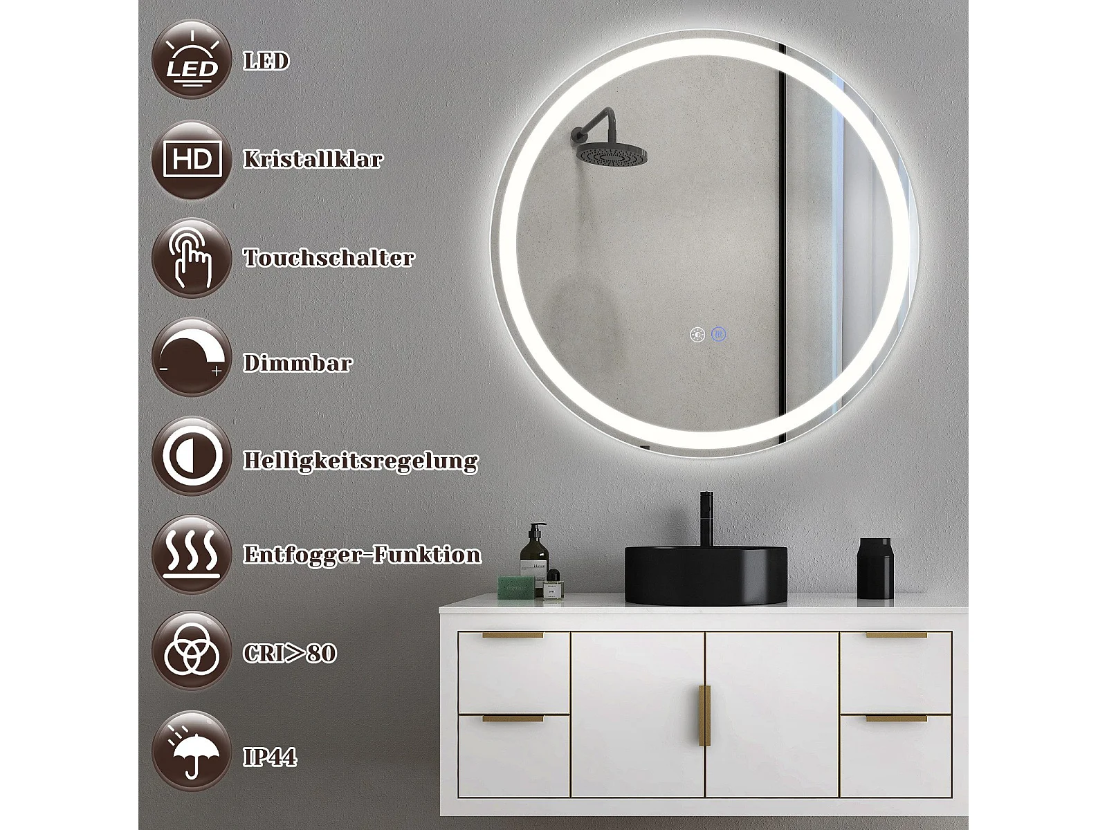 NETTLIFE Miroir lumineux salle de bain - Rond 80 cm LED, IP44, interrupteur tactile, antibuée, réglable 3000K-6500K