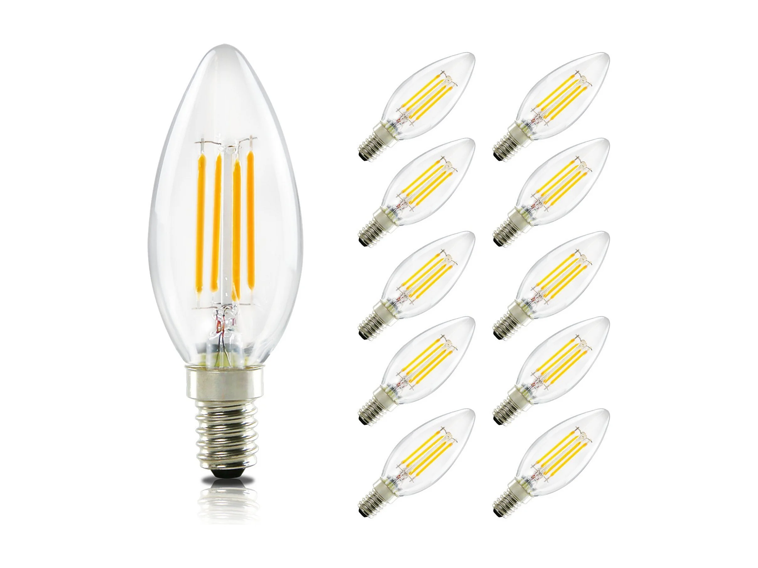 NETTLIFE Pack de 10 ampoules LED E14 : lampe bougie blanc chaud de 4W (2700K) à filament Edison C35 rétro vintage en verre économie non dimmable