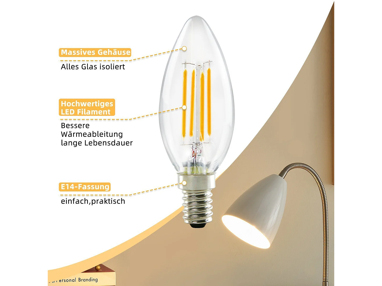 NETTLIFE Pack de 10 ampoules LED E14 : lampe bougie blanc chaud de 4W (2700K) à filament Edison C35 rétro vintage en verre économie non dimmable