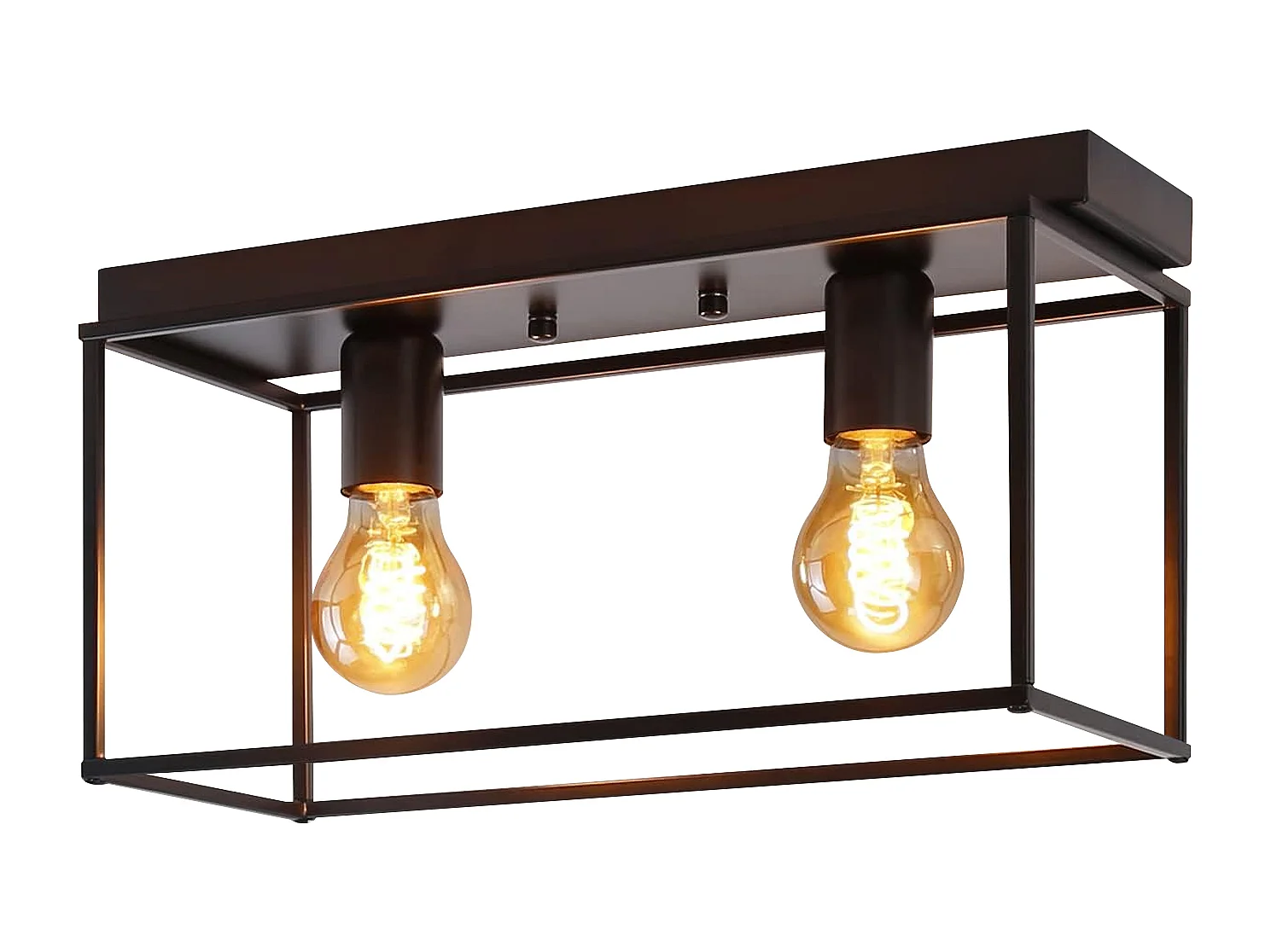 NETTLIFE Plafonnier 2 spots E27 25W rétro - lampe industrielle noire pour salon vintage en métal avec 2 ampoules max pour cuisine