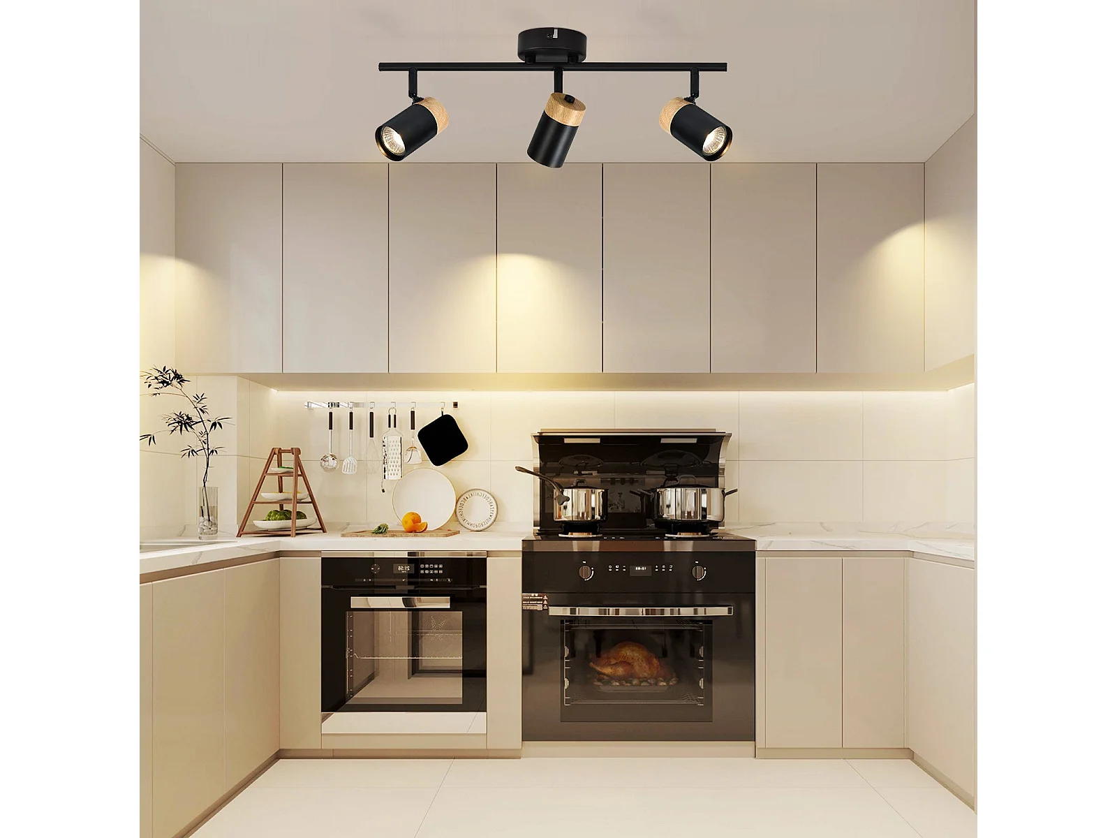 NETTLIFE Spot de plafond spots de plafond noirs lampe de cuisine GU10 spot mural en bois vintage pivotant sans ampoule orientable à 350°