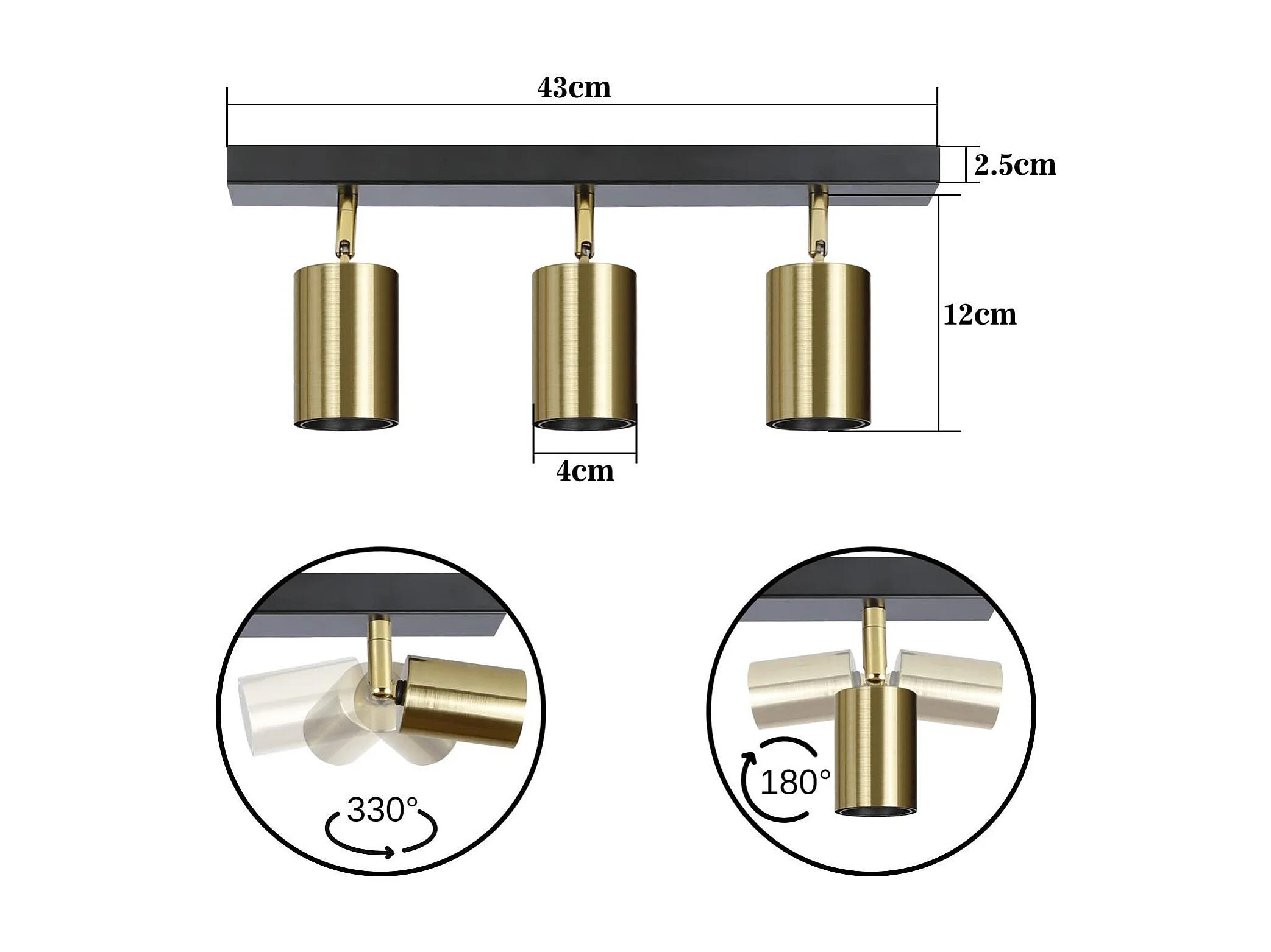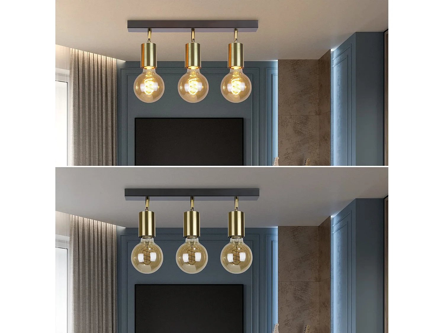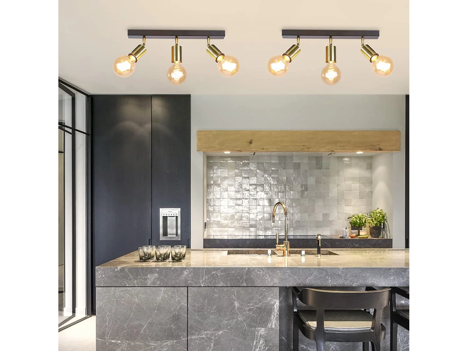 NETTLIFE Plafonnier 3 Spots Pivotant en Métal Barres de Max.25w E27 Lampe de Cuisine Industrielle Vintage Noir Or Rétro Moderne pour Cuisine Couloir
