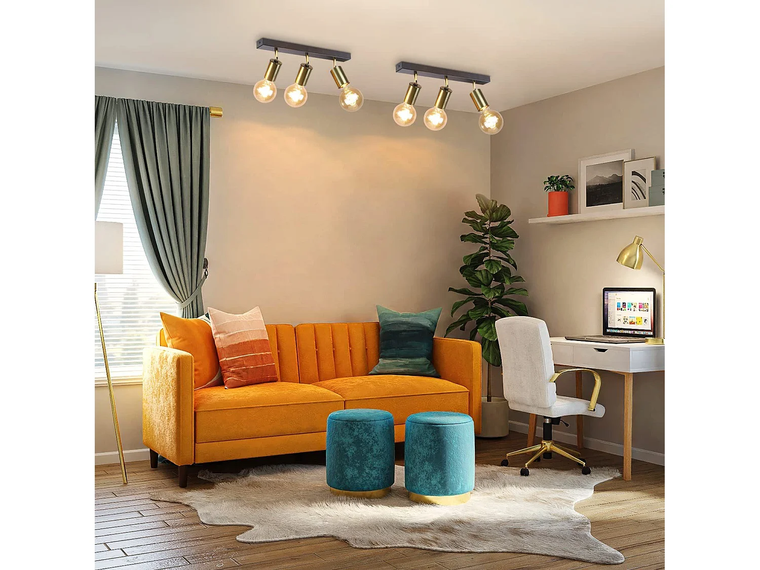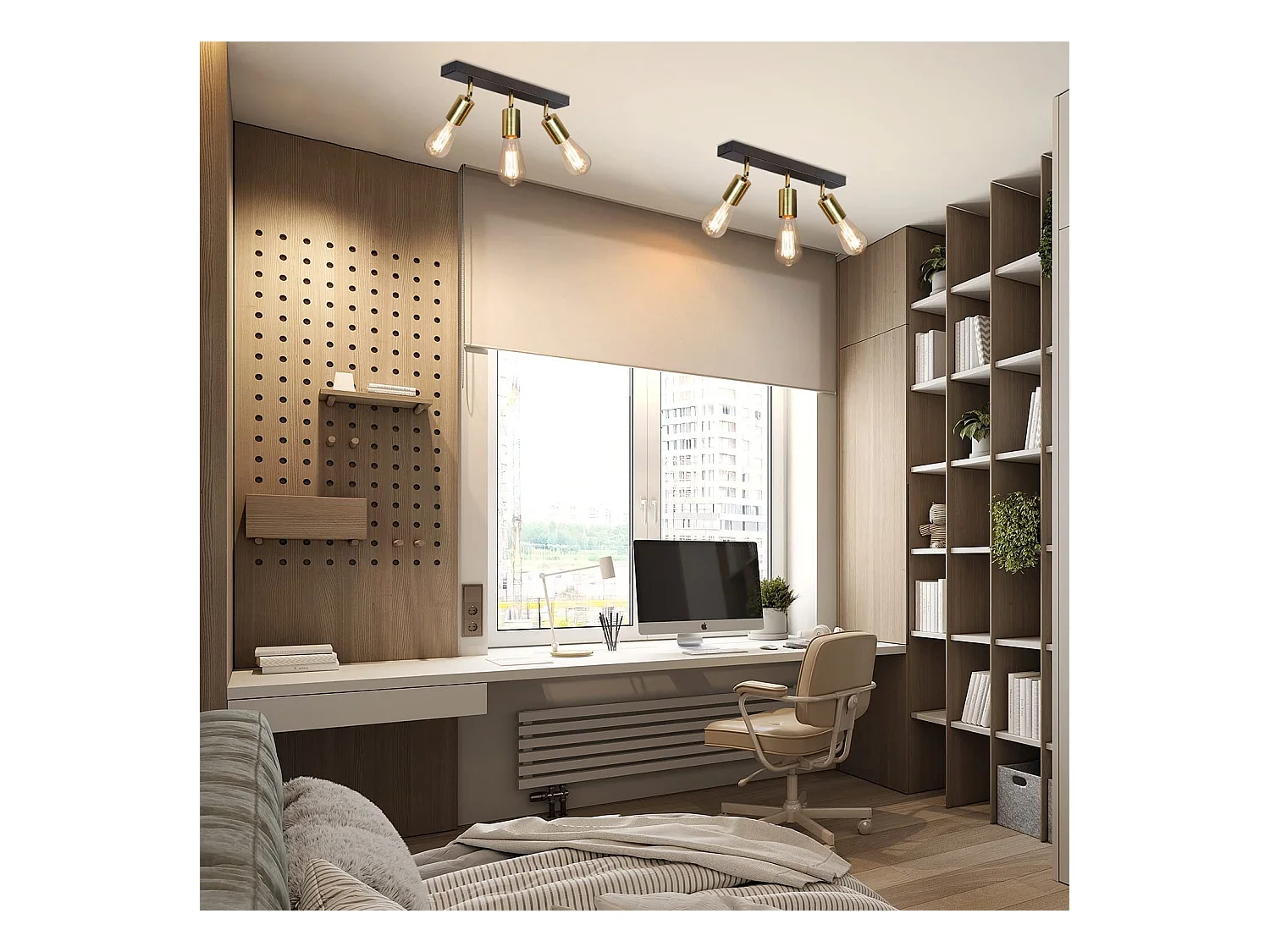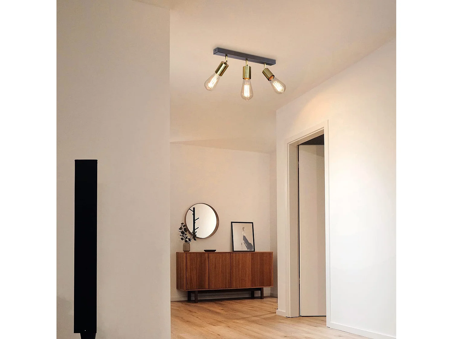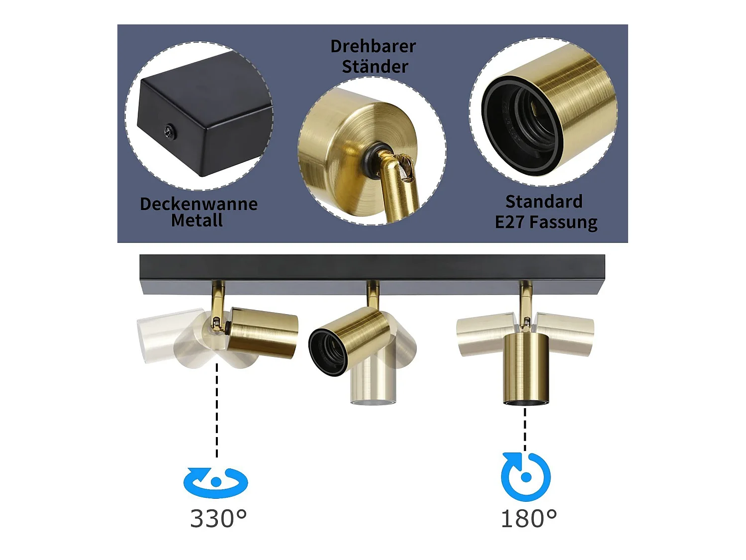 NETTLIFE Plafonnier 3 Spots Pivotant en Métal Barres de Max.25w E27 Lampe de Cuisine Industrielle Vintage Noir Or Rétro Moderne pour Cuisine Couloir