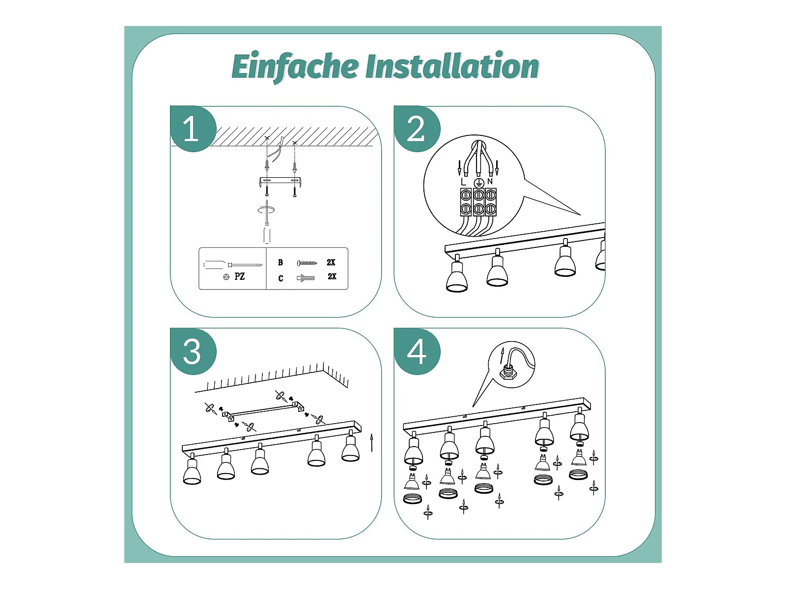 NETTLIFE Plafonnier 6 Spots Blanc : Plafonnier Métal GU10 Spots Pivotant Intérieur pour cuisine bureau salon chambre à coucher, Sans ampoules