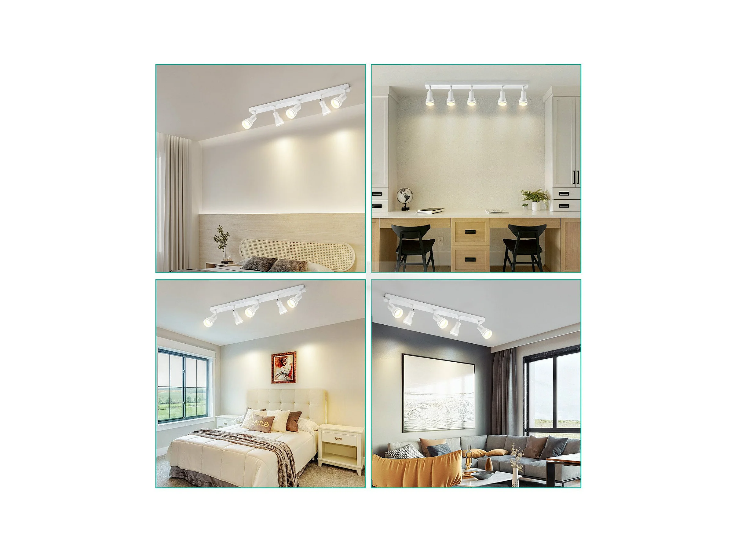 NETTLIFE Plafonnier 4 Spots Blanc : Plafonnier Métal GU10 Spots Pivotant Intérieur pour cuisine bureau salon chambre à coucher, Sans ampoules