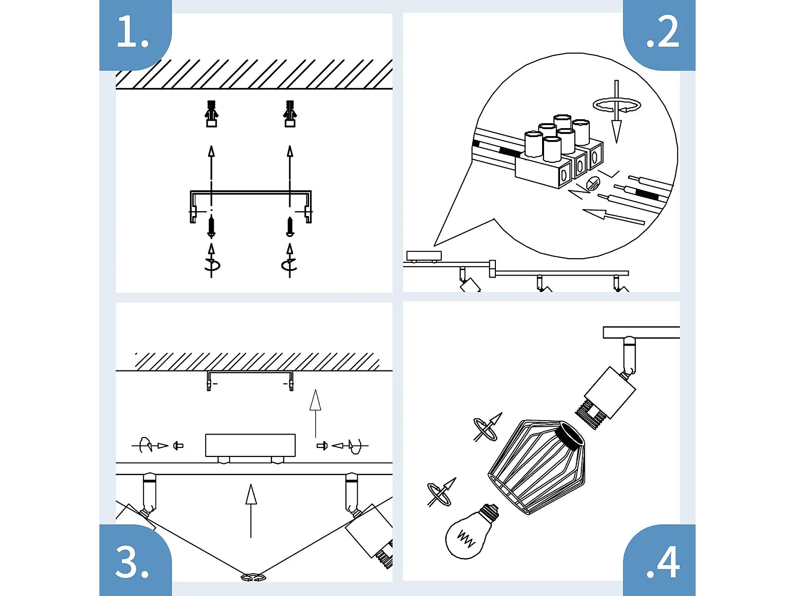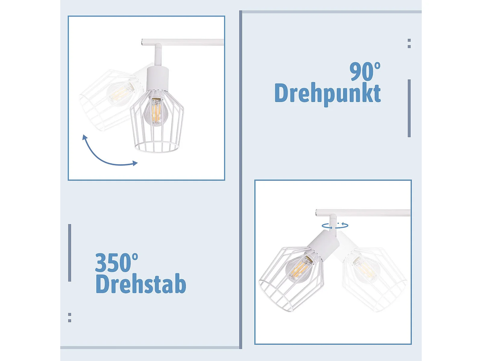 NETTLIFE Spot de plafond vintage E14 intérieur orientable à 350° blanc 4 ampoules rond pour salon d'hôtel