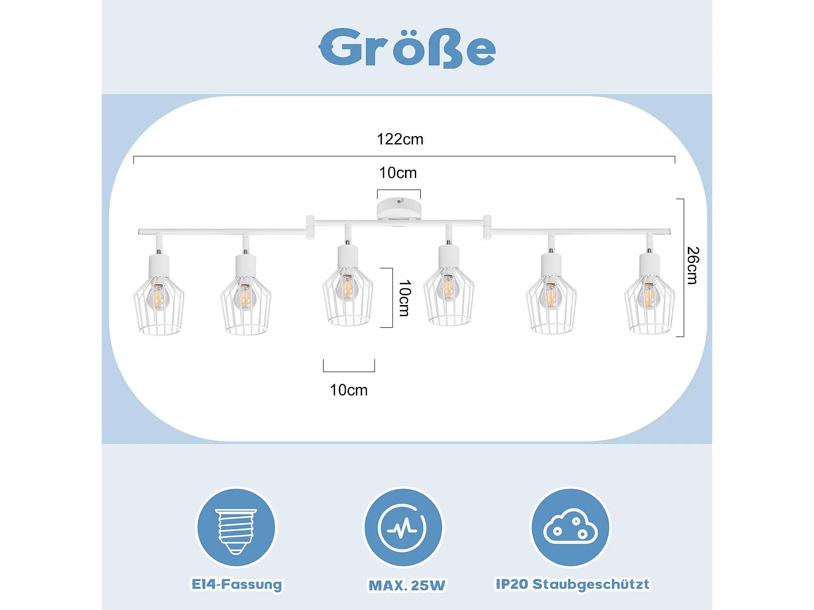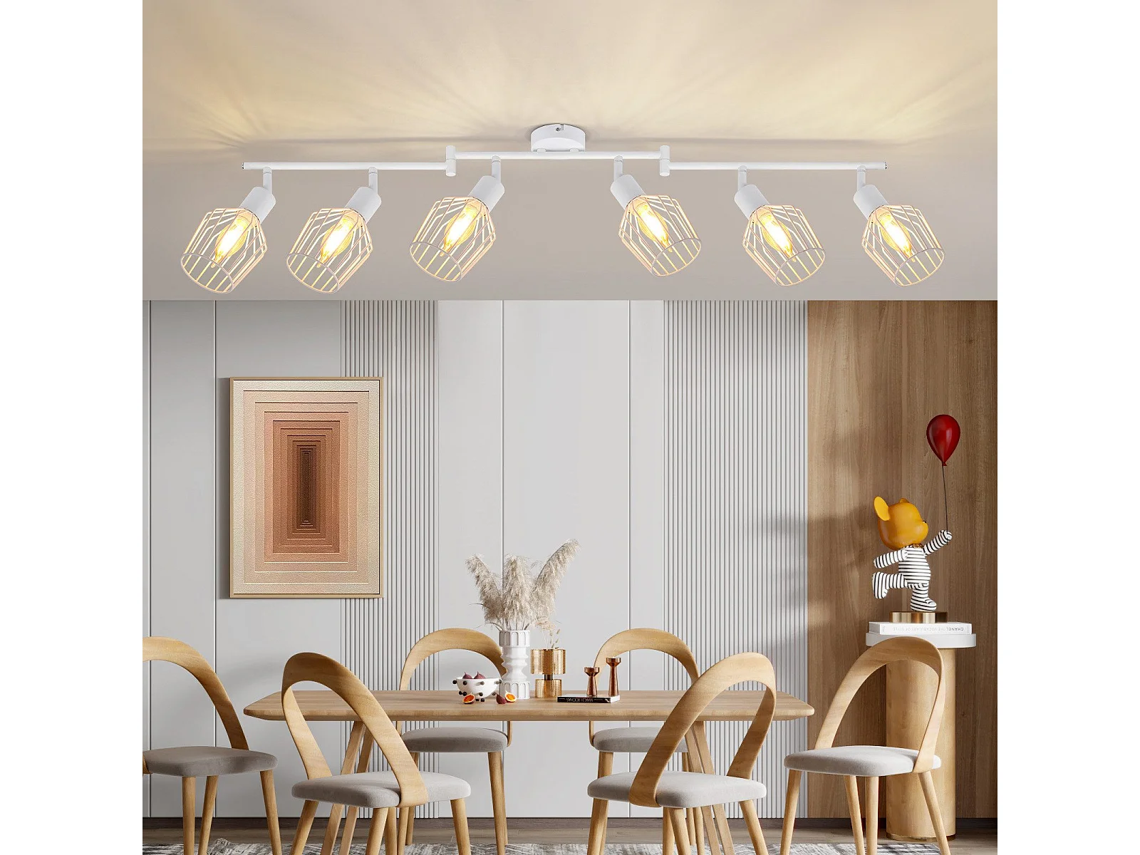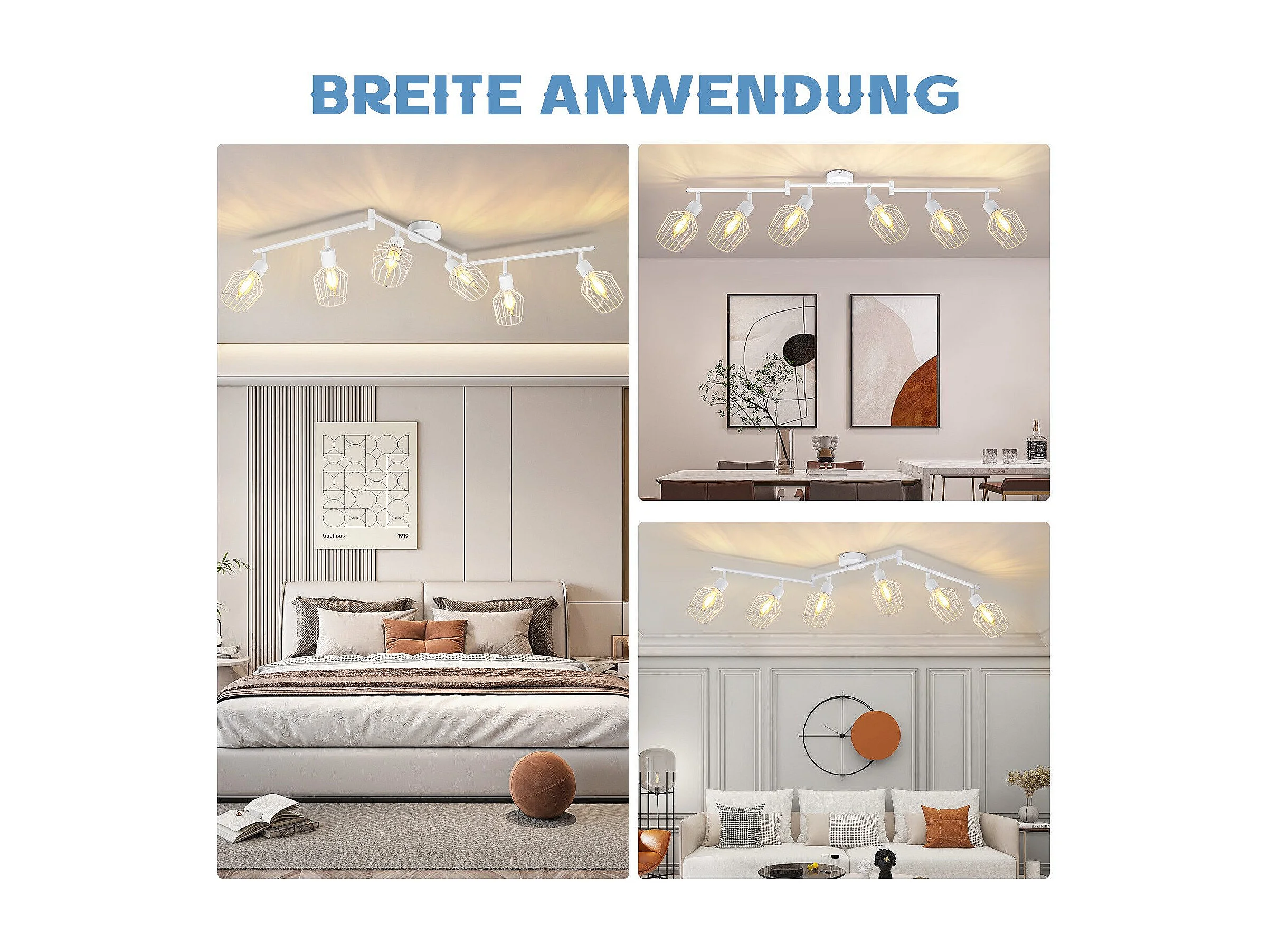 NETTLIFE Spot de plafond vintage E14 intérieur 350° orientable blanc Pivotant 350°Industriel 6 flammes