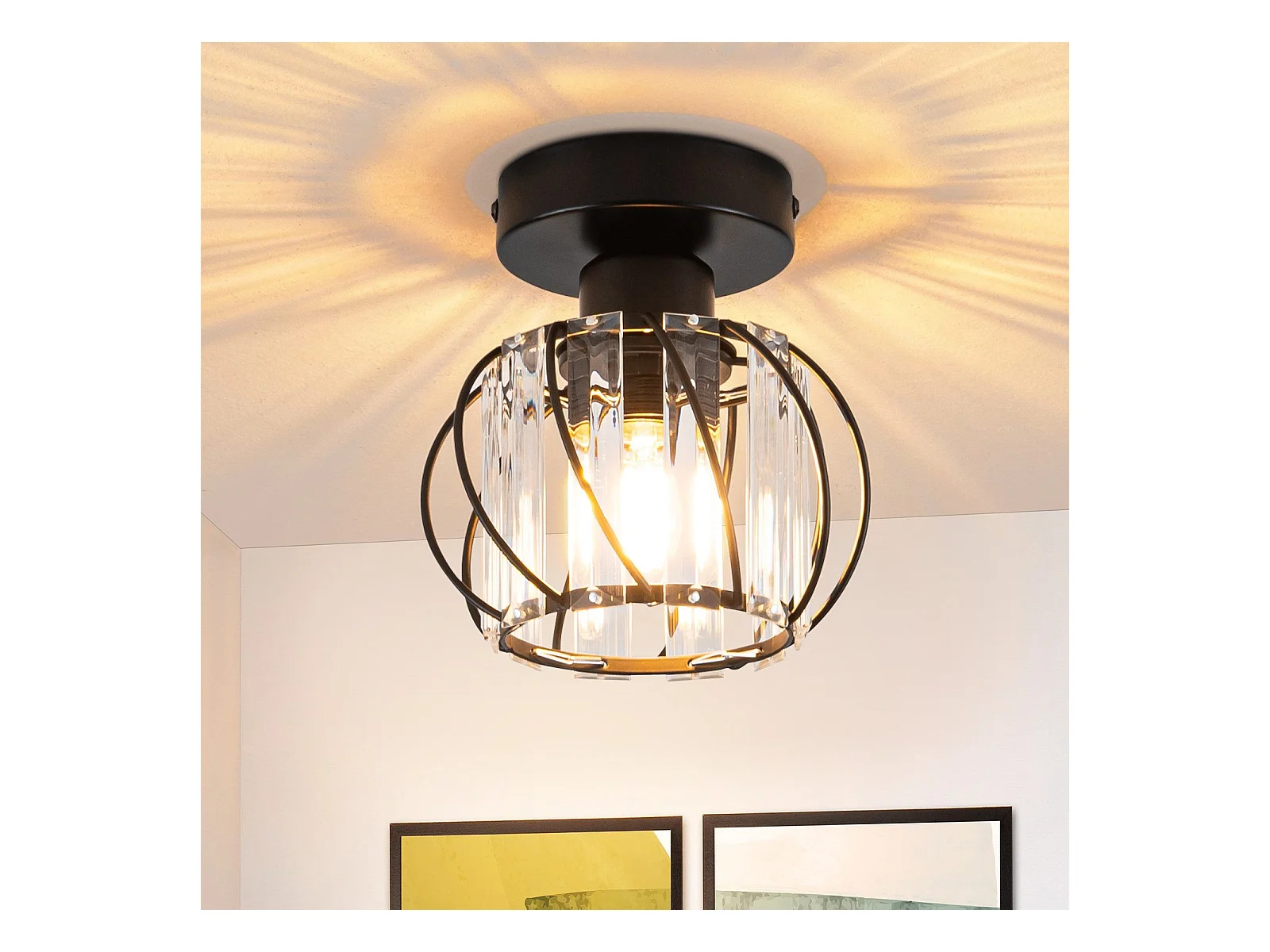 NETTLIFE Plafonnier Cristal Noir Moderne E27 Lampe de Cuisine Vintage avec Cadre en Métal