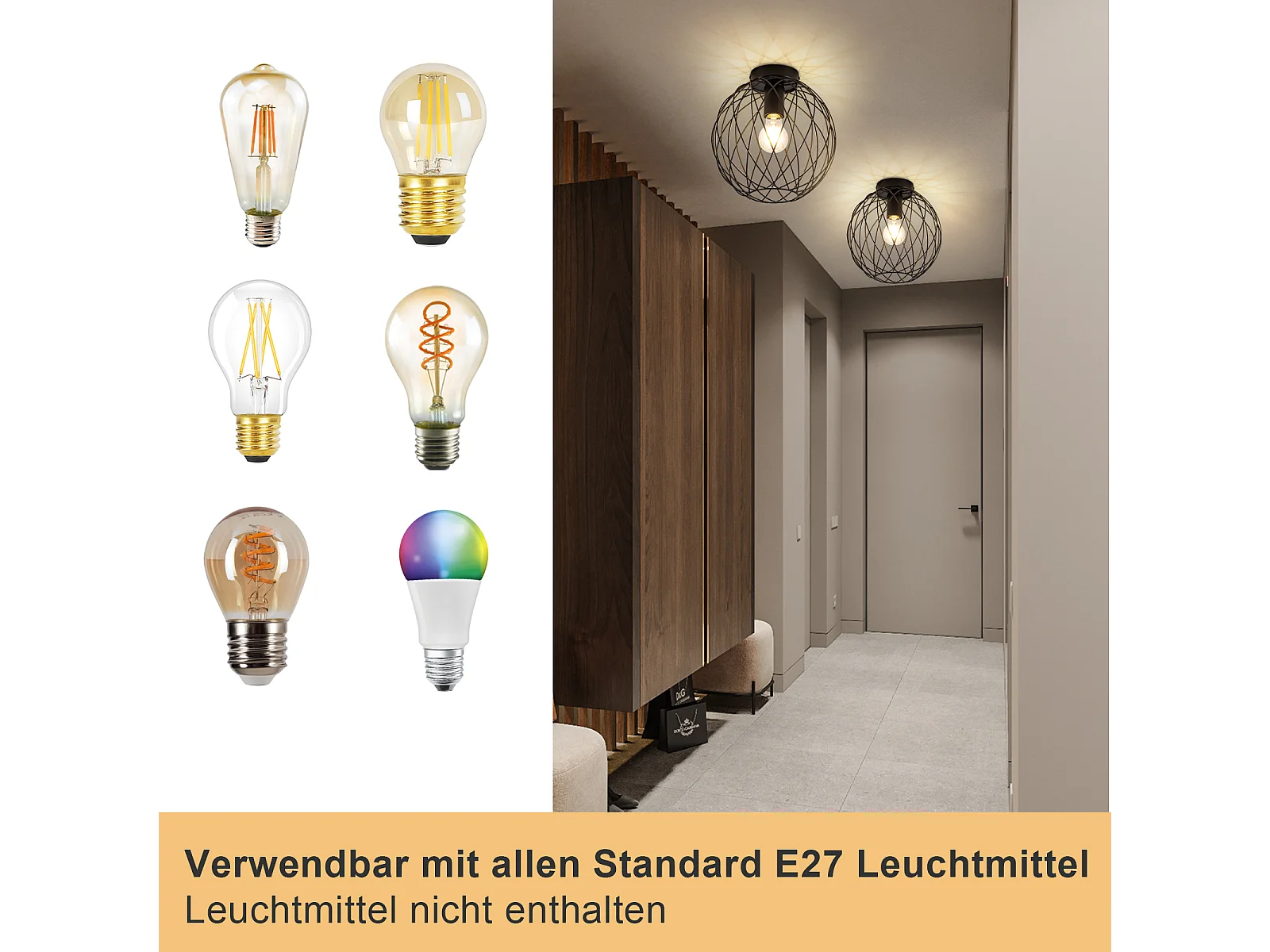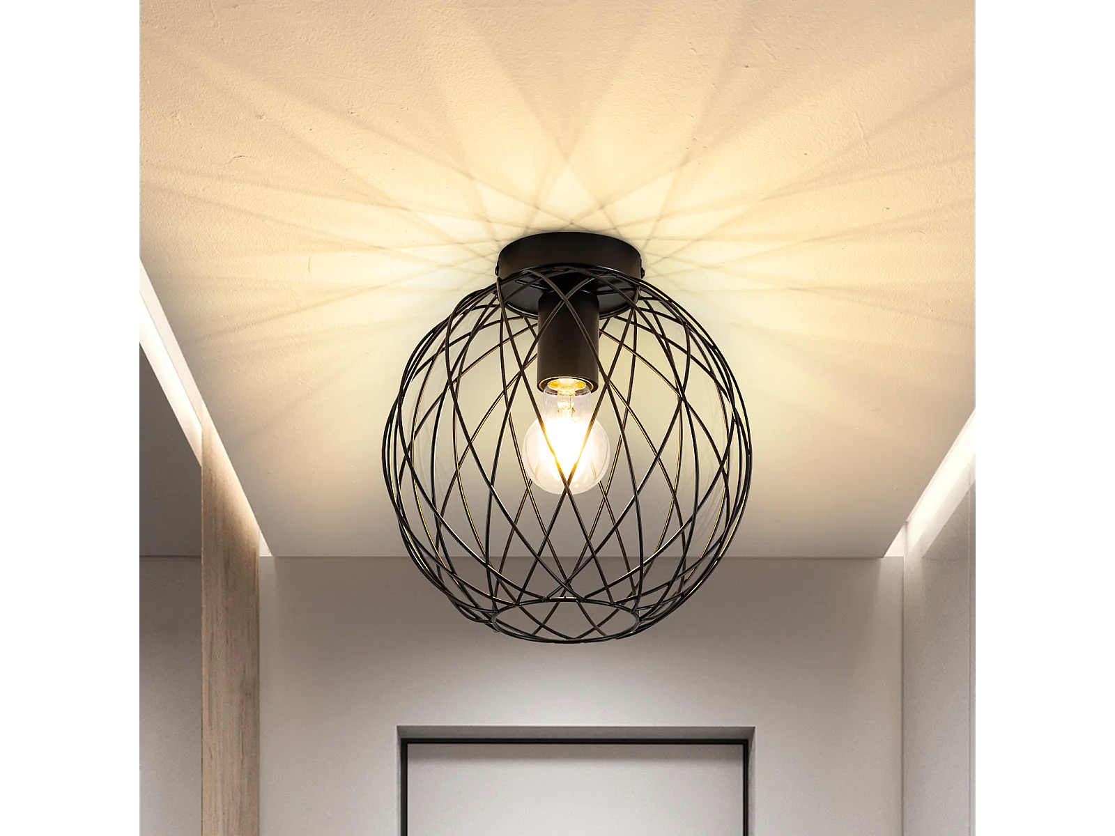 NETTLIFE Plafonnier plafonnier vintage noir industriel - lampe de couloir E27 1 ampoule rétro cage métal