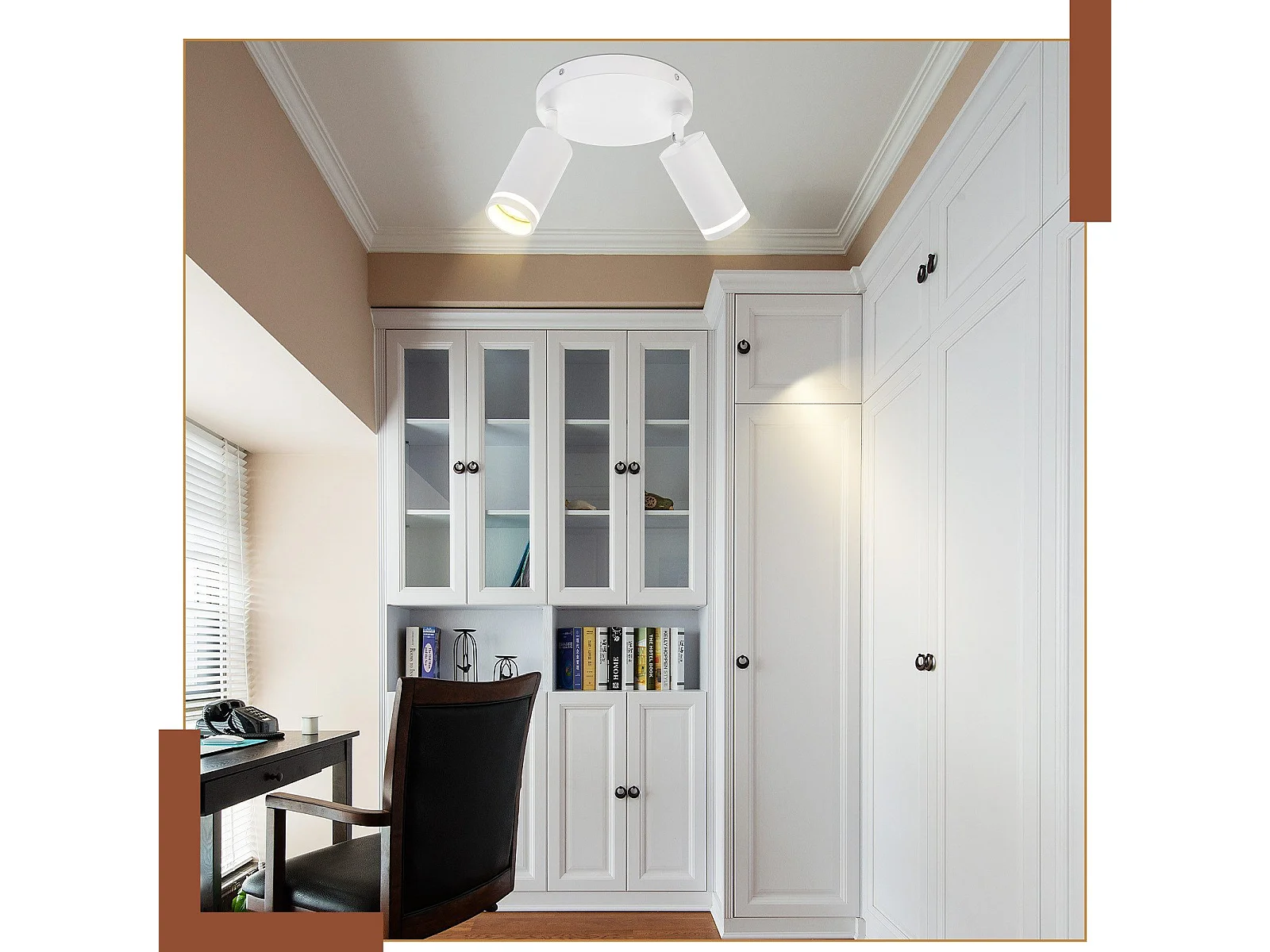 NETTLIFE Plafonnier LED 3 flamme - Blanc Plafonnier GU10 Spot pivotant Applique murale en bois Spot mural pour salon chambre Sans ampoule