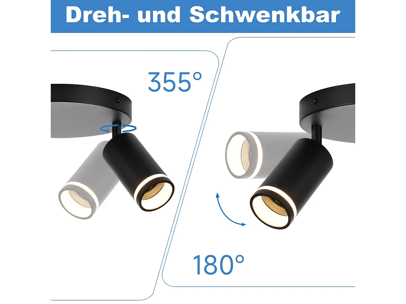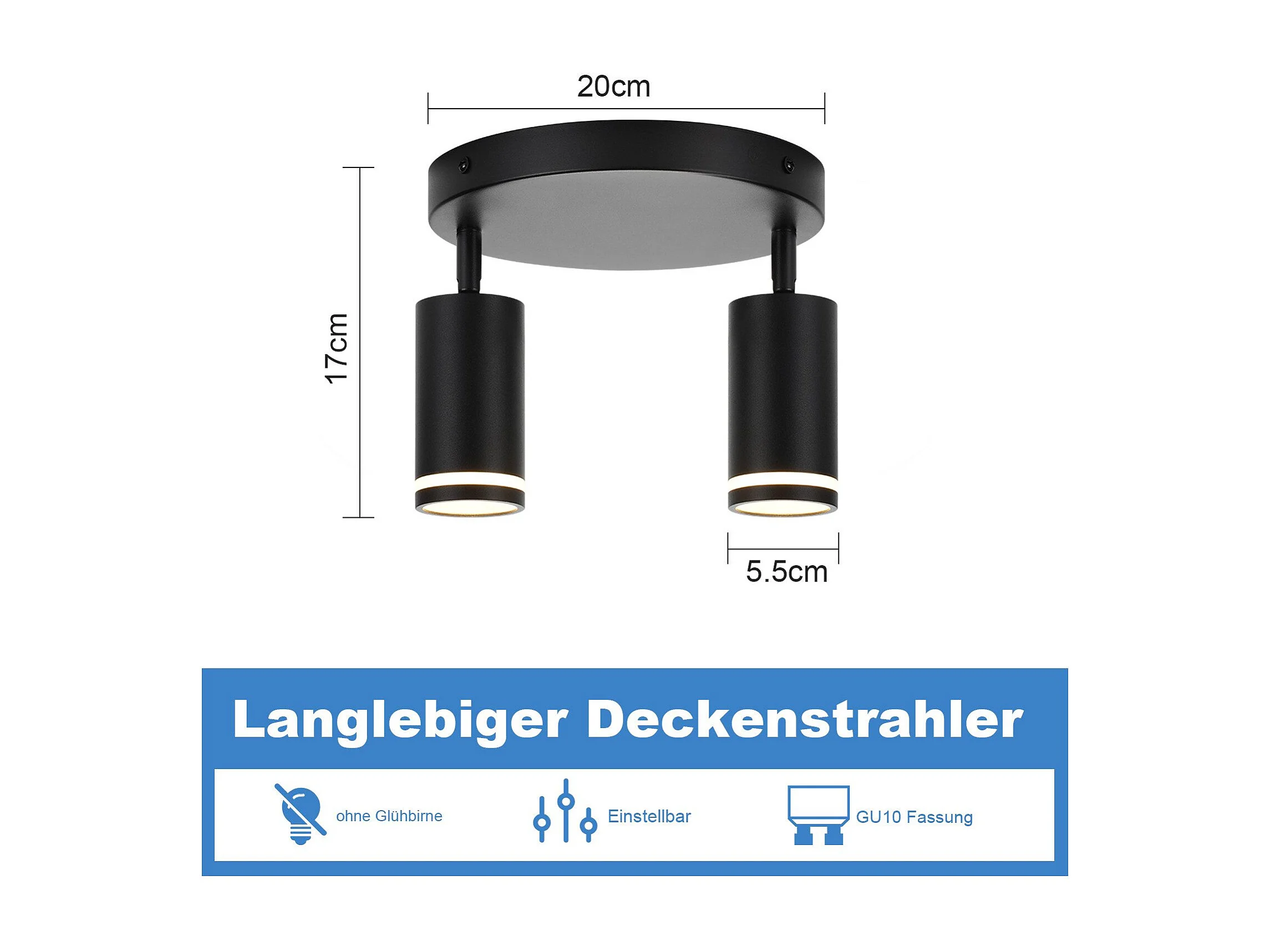 NETTLIFE Plafonnier LED 2 flamme - Noir Plafonnier GU10 Spot pivotant Applique murale en bois Spot mural pour salon chambre Sans ampoule