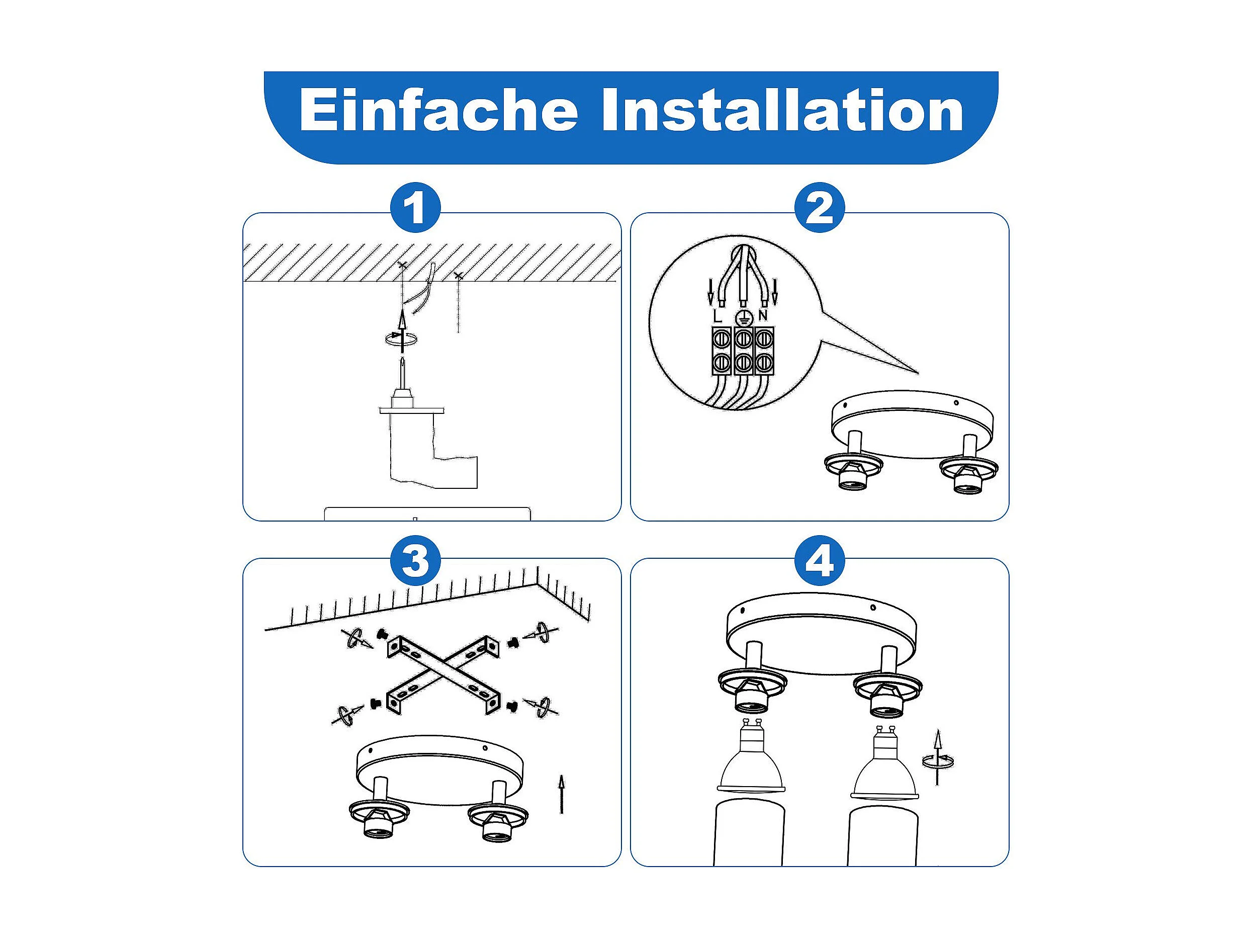 NETTLIFE Plafonnier LED 4 flamme - Noir Plafonnier GU10 Spot pivotant Applique murale en bois Spot mural pour salon chambre Sans ampoule