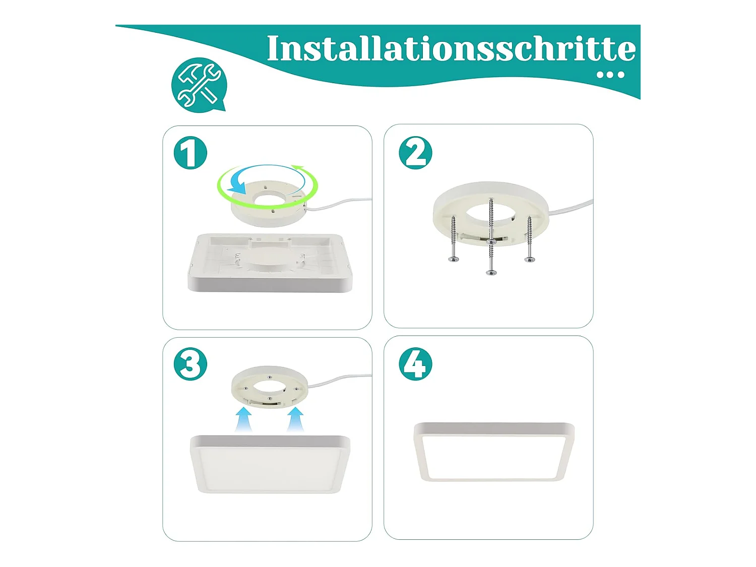 NETTLIFE plafonnier LED 22CM lampe de salle de bain carré IP54 18W blanc 5000K