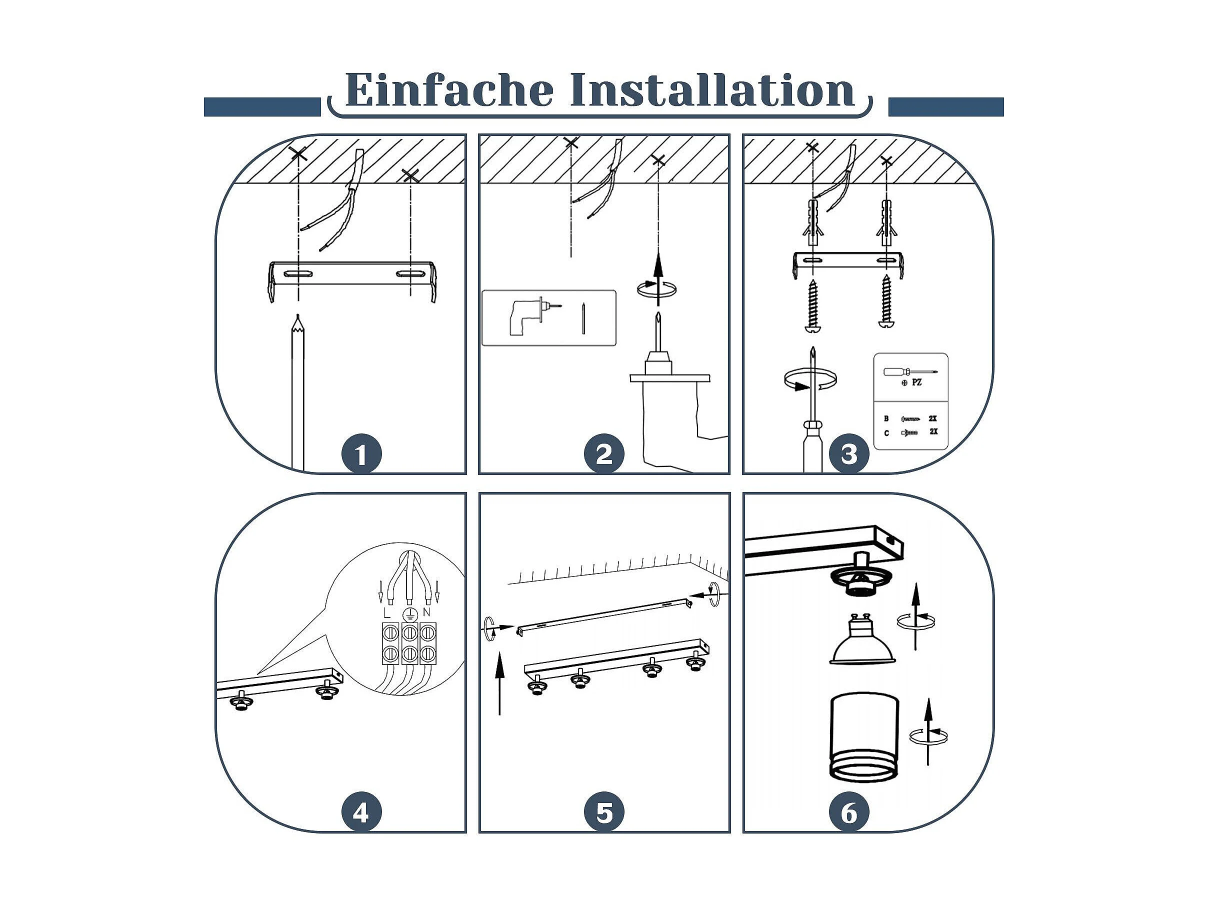 NETTLIFE Plafonnier LED 4 flamme - Noir Plafonnier GU10 Spot pivotant Applique murale en bois Spot mural pour salon chambre Sans ampoule
