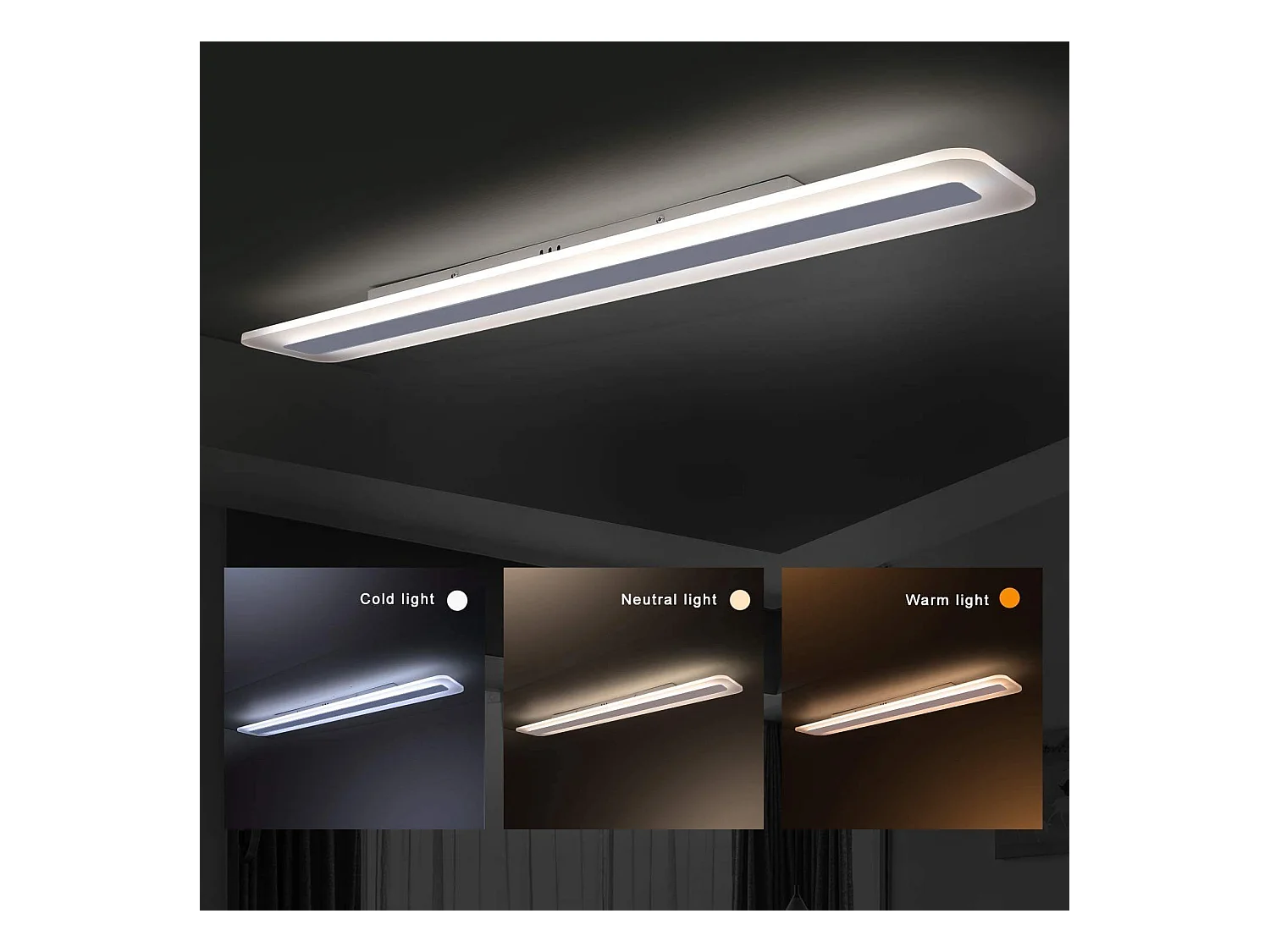NETTLIFE Plafonnier LED Moderne 80CM Blanc Long Lampe de Dimmable avec Télécommande Plat Acrylique pour Salon Chambre Bureau Cuisine