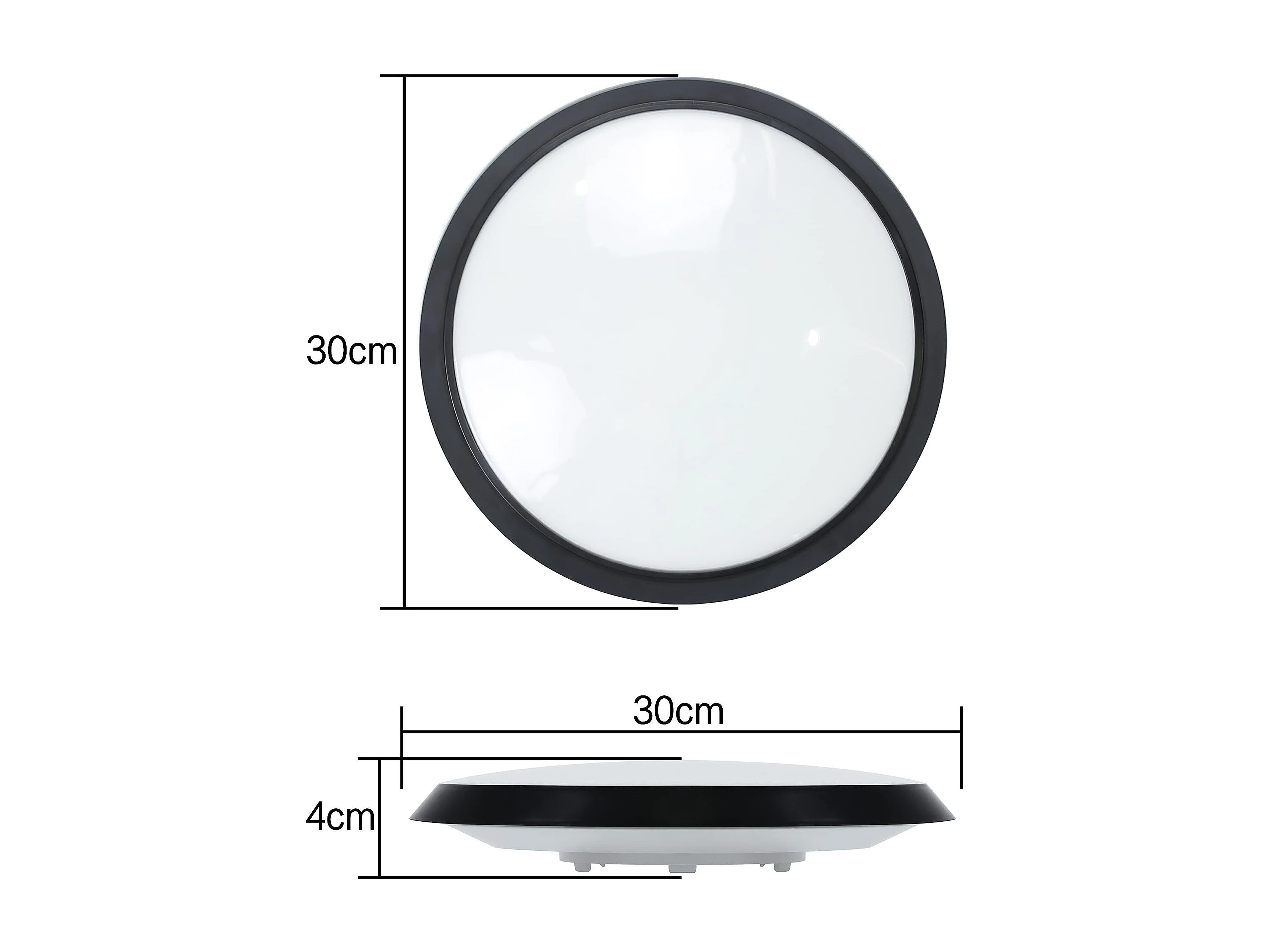 NETTLIFE Plafonnier LED Plat Chambre Lampe Dimmable Noir Lampe de Cuisine 30 W IP44 Lampe de Cave 28 cm Lampe de Salle de Bain Télécommande Salon