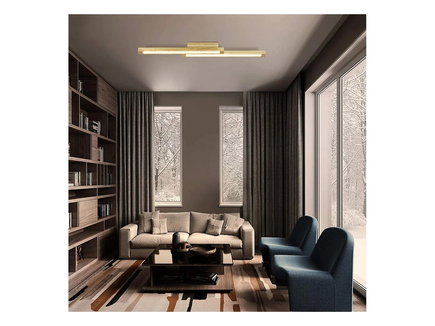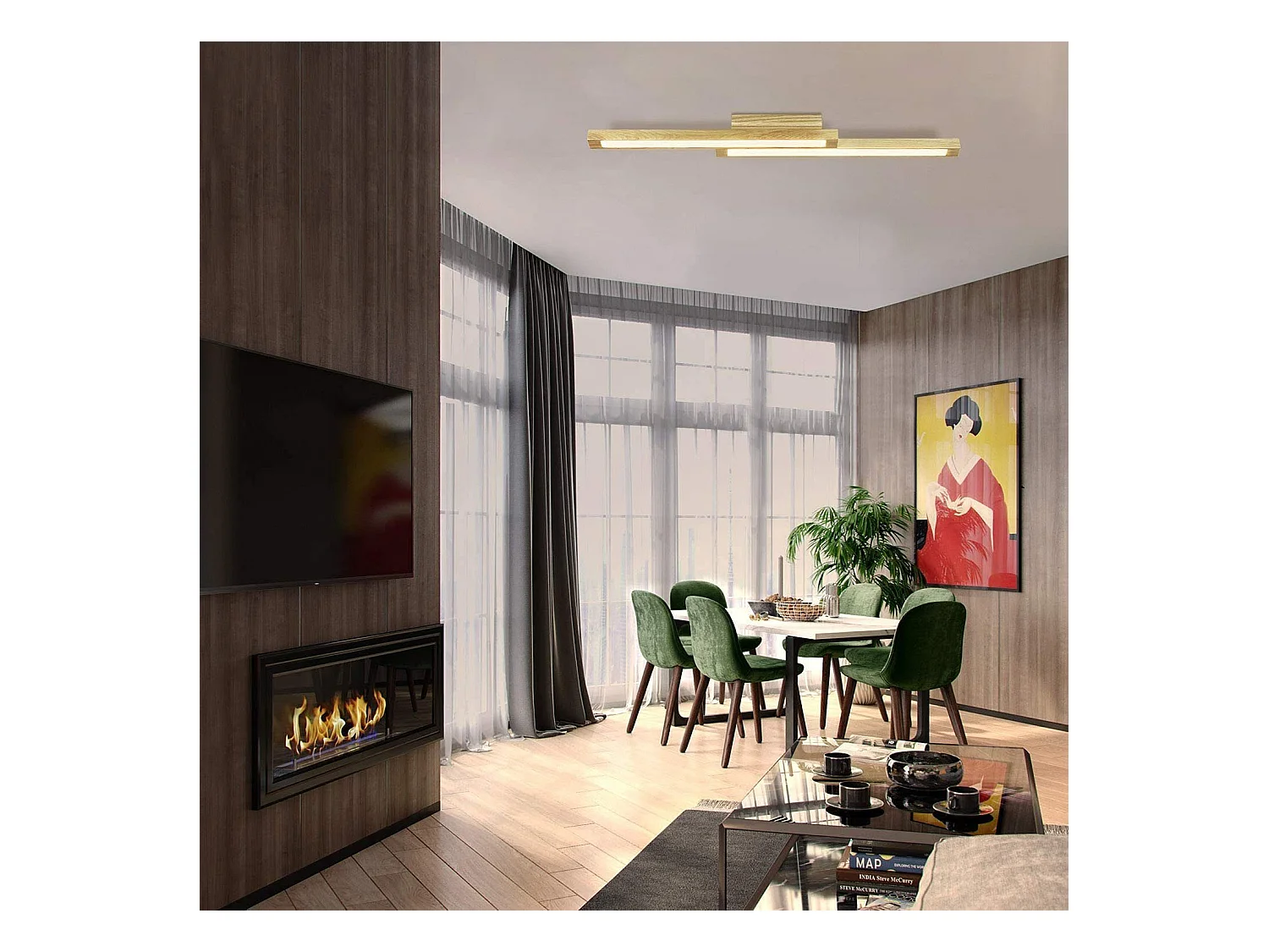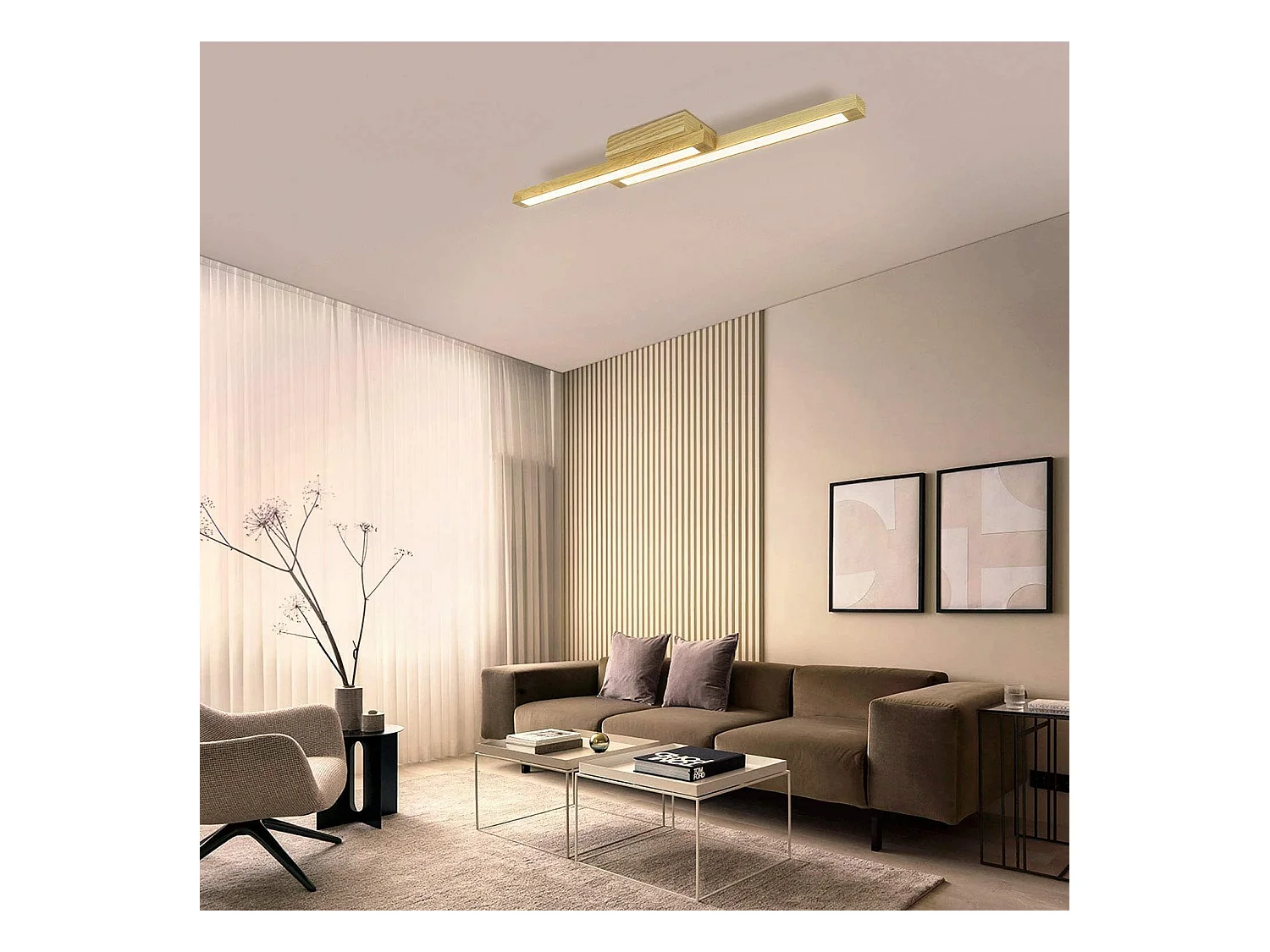 NETTLIFE Plafonnier LED Bois Clair 90 cm 3000 K Blanc Chaud Lampe de Chambre au Design Rétro, pour Salon, Chambre, Couloir, Salle à Manger