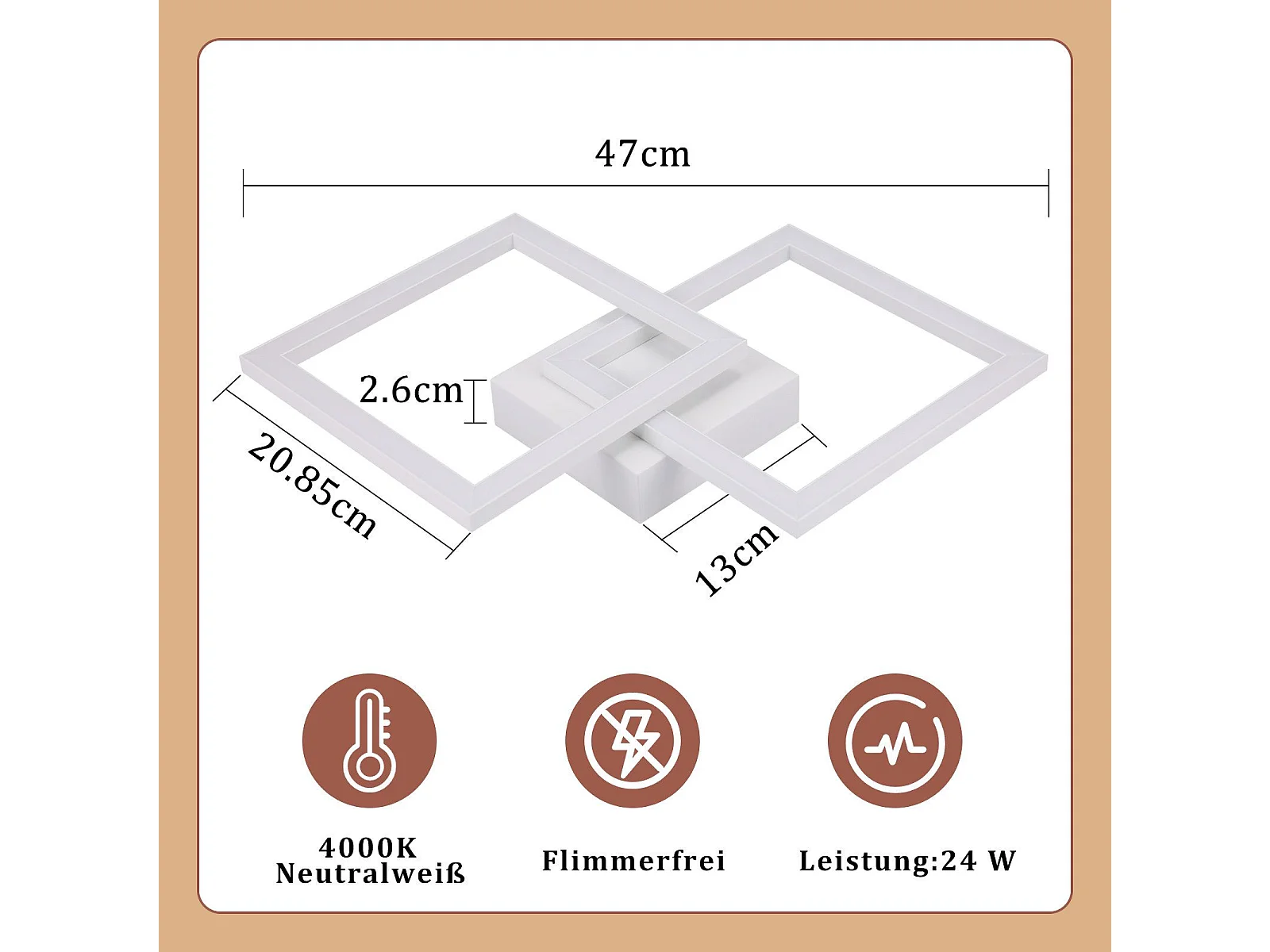 NETTLIFE Plafonnier LED Carré 24 W 4 000 K Blanc Neutre Lampe De Cuisine Moderne