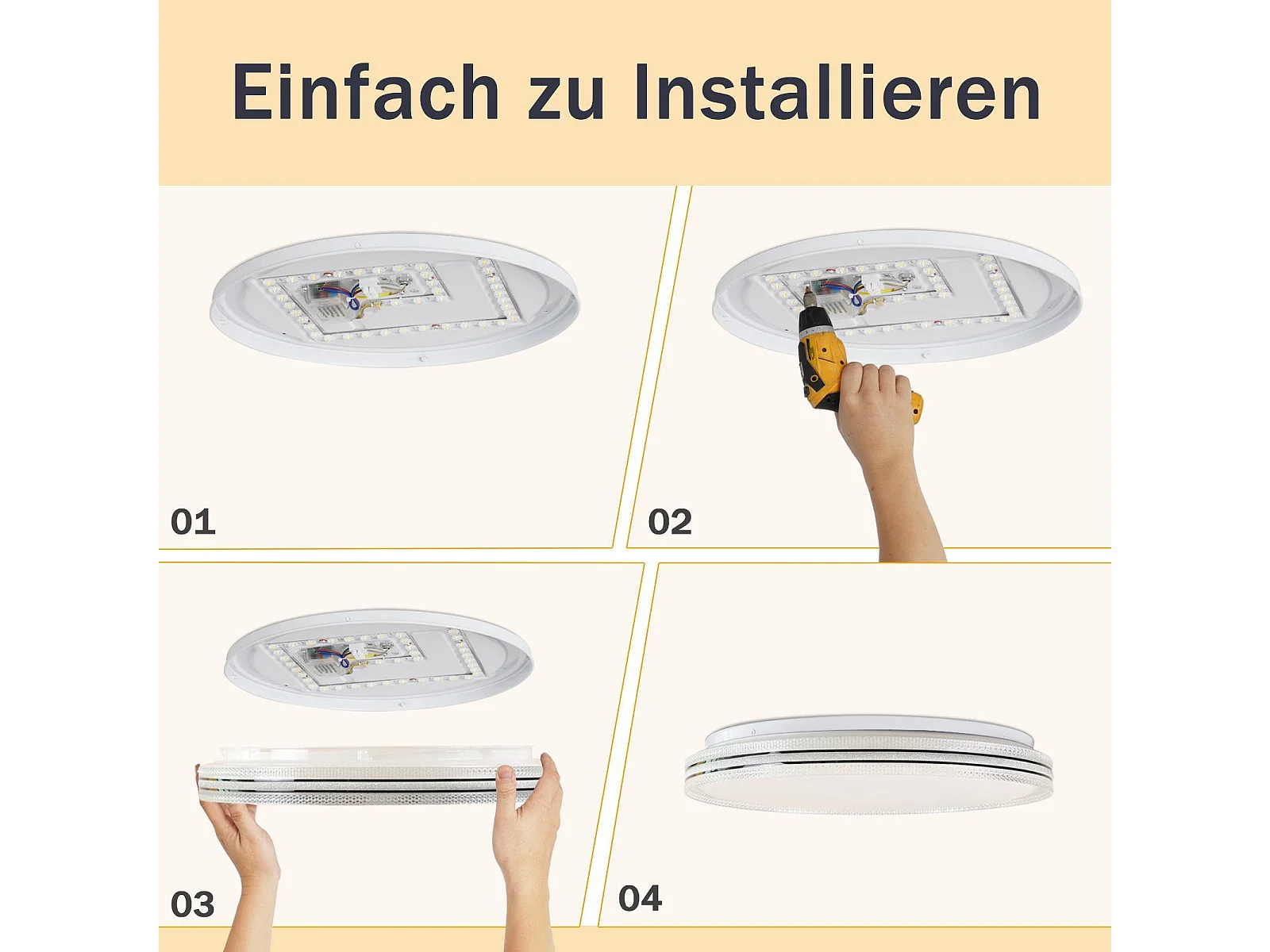 NETTLIFE Plafonnier LED Chambre 40 cm Lampe de Chambre 44 W Lampe de Couloir Lampe de Cuisine Moderne Salon Rond pour Couloir Chambre d'enfant